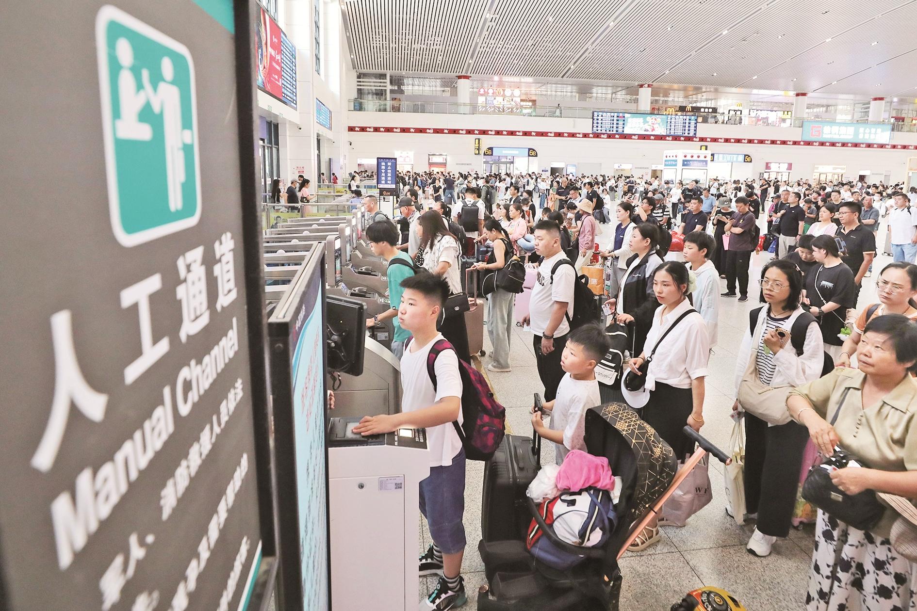 7月1日,旅客在江苏徐州东站检票进站。当日,全国铁路实行新的列车运行图,同时为期62天的2025年全国铁路暑期运输也拉开帷幕。 新华社记者 毛俊 摄