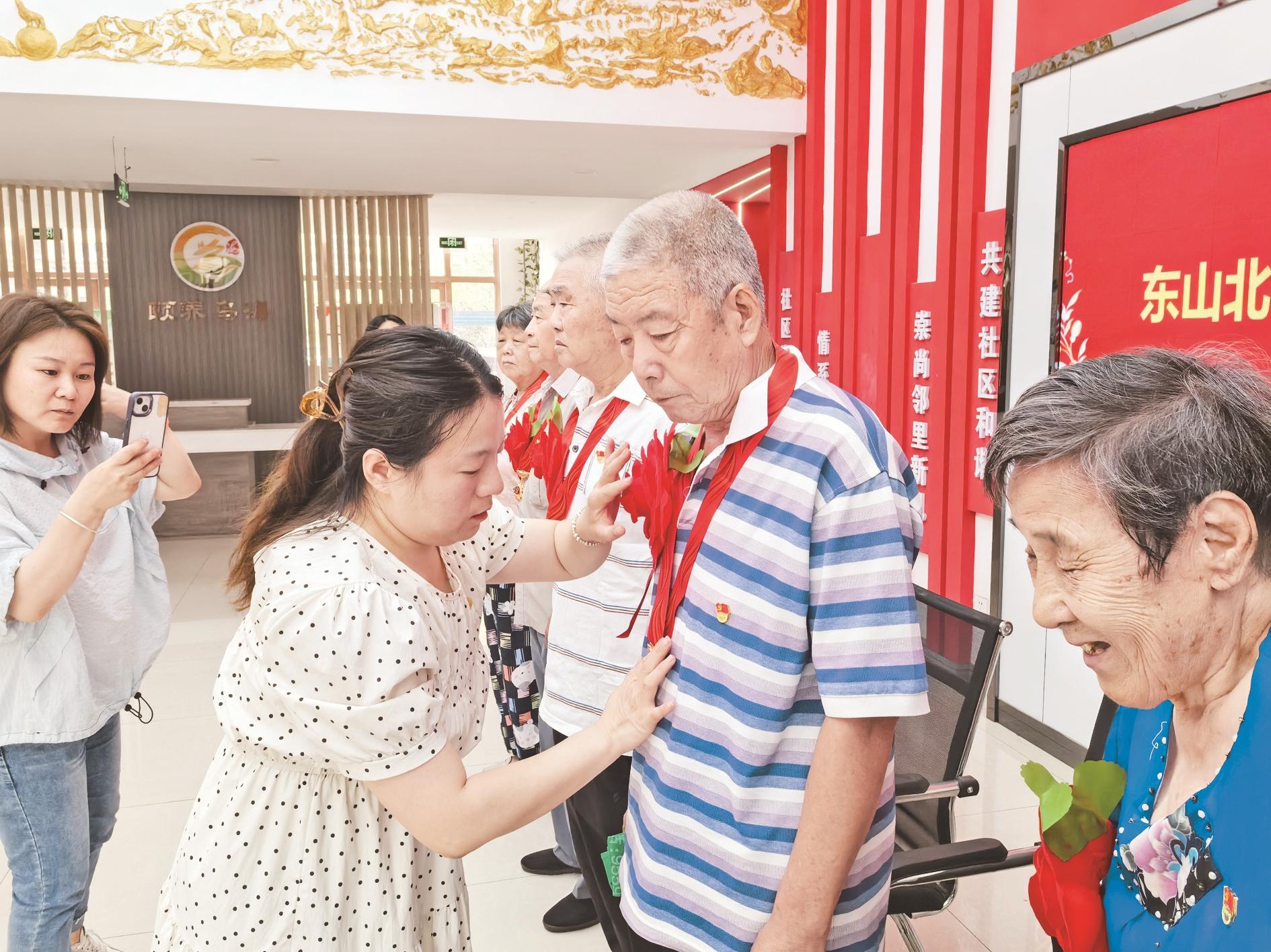 7月1日,为传承党的优良传统和作风,海勃湾区海北街道东山北社区党委为辖区内满50年党龄的老党员颁发“光荣在党50年”纪念章,感谢他们为党的事业作出的贡献。 (张楚研 摄)
