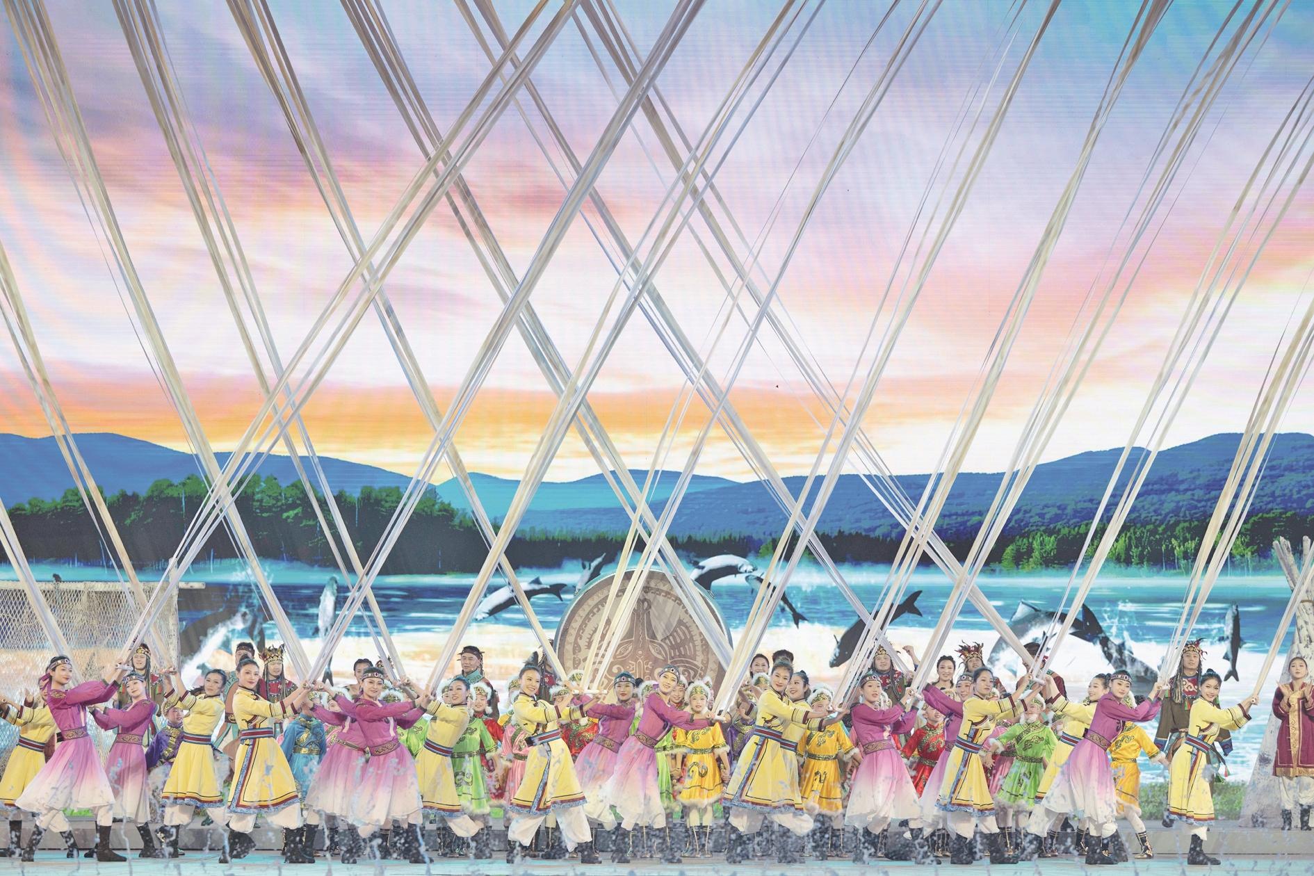 7月2日,演员在2025黑龙江省特色文化旅游推介会现场表演。当日,2025黑龙江省特色文化旅游推介会在抚远市举行,来自黑龙江省13个市(地)的演职人员热情推介家乡的自然生态和人文风情,《黑龙江省支持冰雪经济发展若干政策措施》也在会上同时发布。 新华社记者 张涛 摄