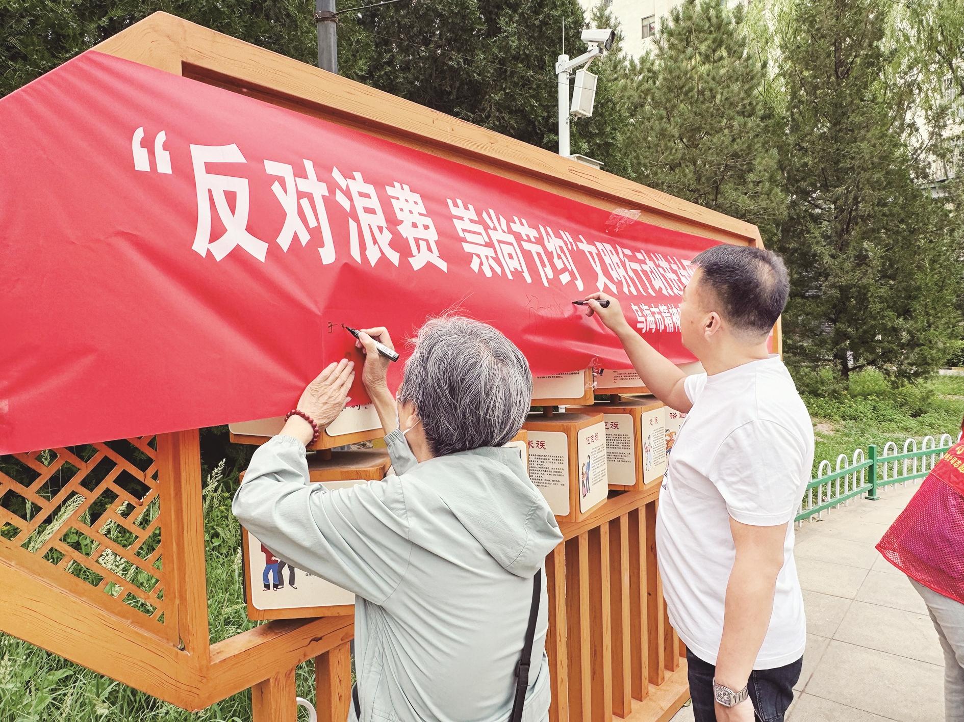6月25日,市精神文明建设办公室联合内蒙古电力(集团)乌海供电公司走进海勃湾区满世水云轩小区,开展“反对浪费 崇尚节约”文明行动进社区主题宣传活动。 (段维娜 摄)