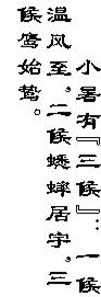 民谚中讲:“小暑大暑,上蒸下煮”。自小暑之后就将进入伏天,民间一直流传着“小暑过,一日热三分”的歌谣。意思就是,小暑过后,天气日渐炎热,尤其是在小暑与处暑之间,是一年中气温最高且又潮湿、闷热的时段。