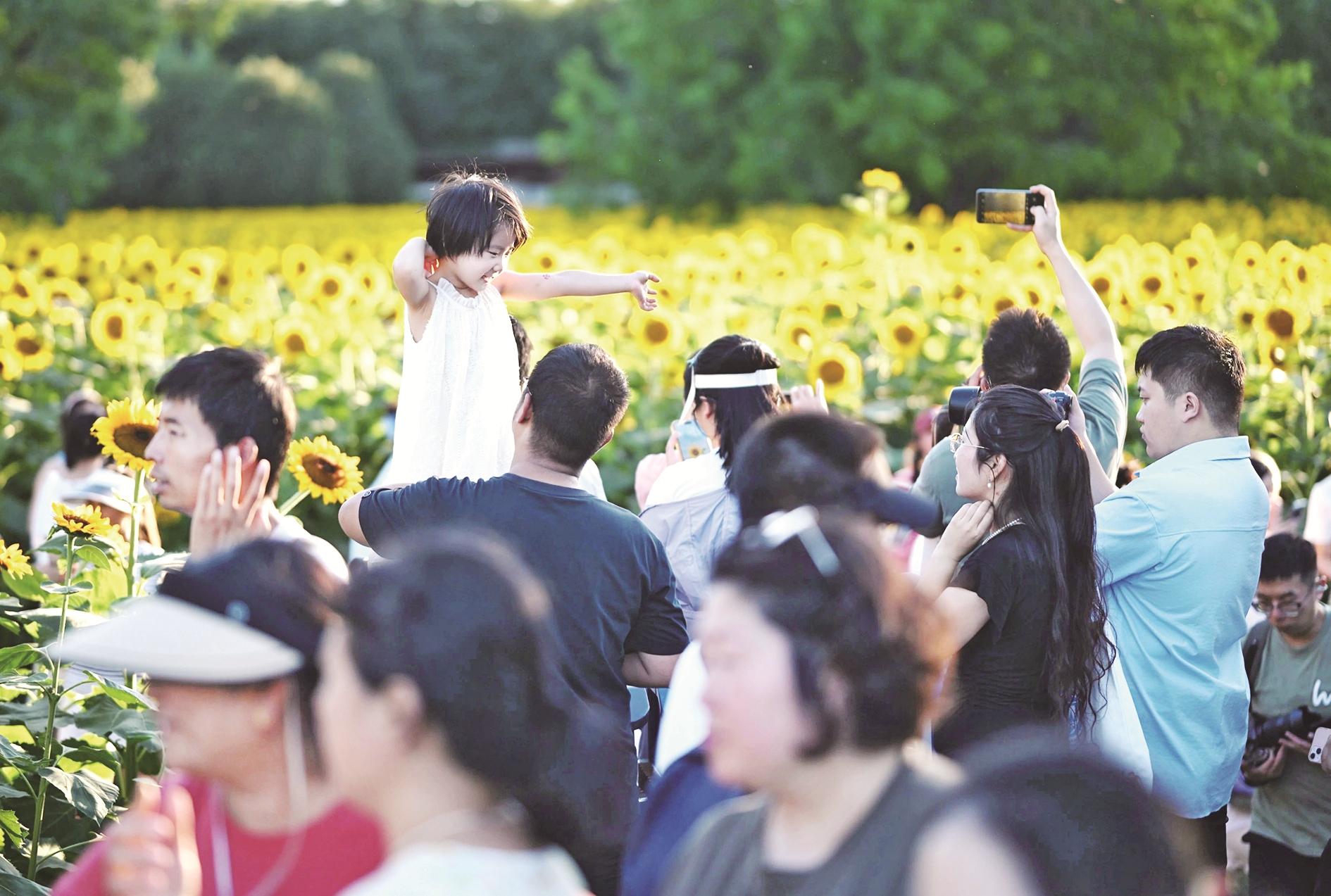 盛夏时节,北京奥林匹克森林公园北园的向日葵迎来最佳观赏期,吸引众多市民游客前来观赏。