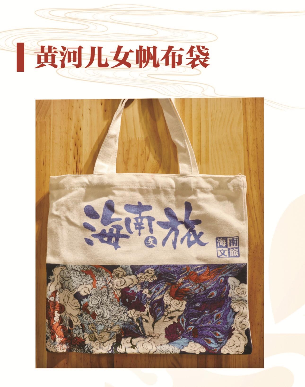 不仅如此,环保理念还融入了金色摇篮系列。黄河儿女帆布袋采用粗棉麻布制作,袋身印着“海南文旅”字样和多彩的黄河景象图。“限塑令实施后,这种有文化内涵的帆布袋成了我的出行必备品。”在菜市场买菜的市民马阿姨不论走到哪都喜欢收集布袋子,“布袋子大多印有各式图案和字样,不仅像一本接地气的旅行日记,更是环保低碳。”马阿姨说。