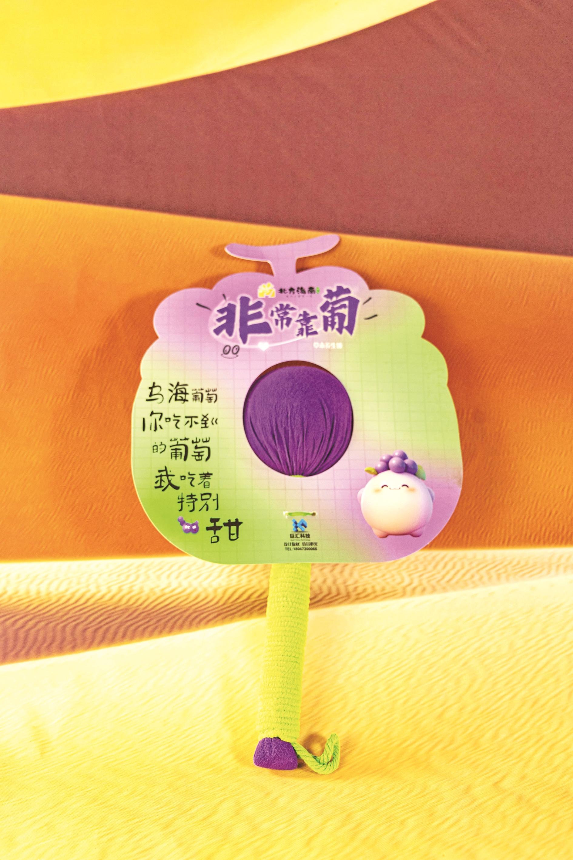 乌海葡萄是全国农产品地理标志登记产品,绿色生态系列围绕葡萄开发了针织挂件、葡萄酒具等产品。天下乐油桃是乌海的另一张“水果名片”,其形象还做成了卡片、冰箱贴等方便携带的文创产品。