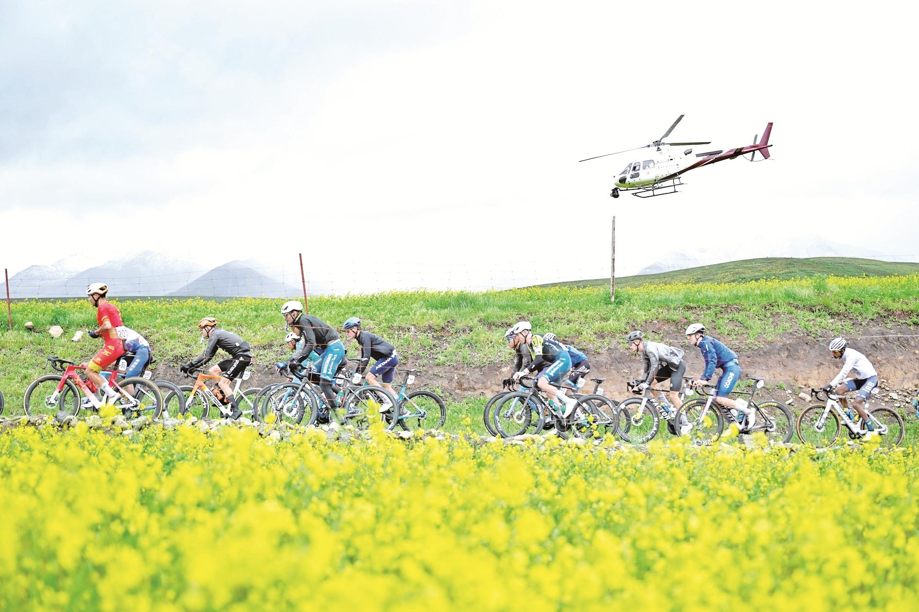 当日,第二十四届环大美青海国际公路自行车赛进行第三赛段互助至门源的角逐。