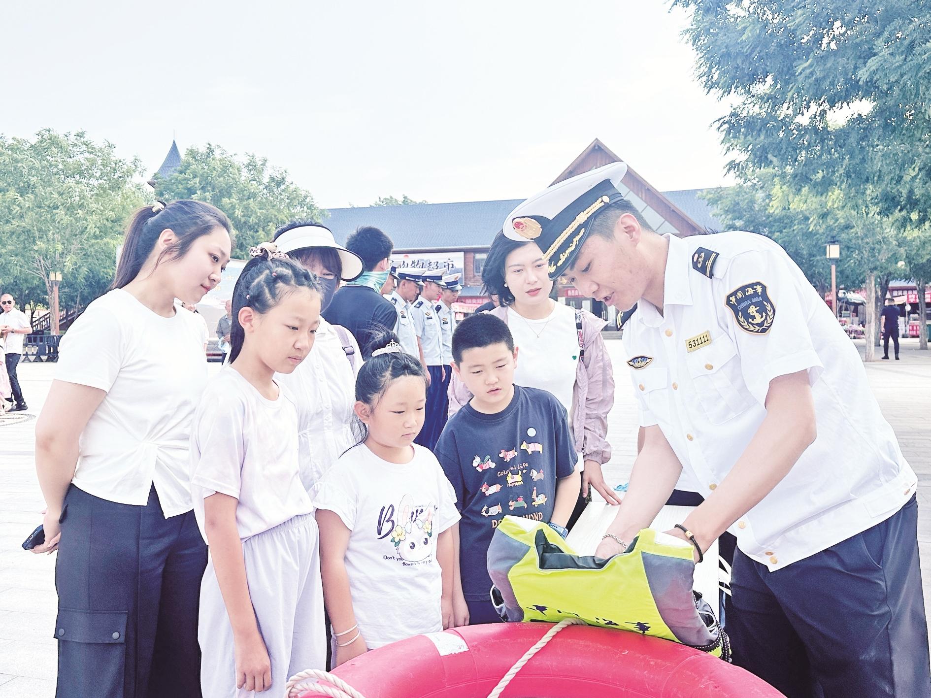 7月11日是中国航海日,今年航海日活动的主题是“绿色航海 向新图强”。当天的启动仪式上,涉水企业代表宣读了《中国航海日倡议书》。启动仪式后,航海科普、防溺水注意事项及救援知识、如何正确使用救生衣等宣传互动活动同步开展。(王蒙 摄)