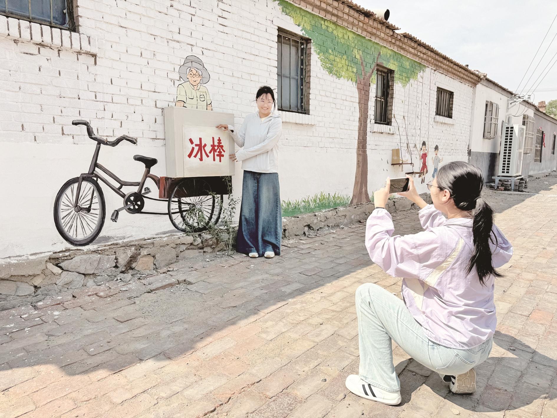 “原先斑驳老旧的墙面经过彩绘后焕然一新,变成‘有故事’的文化墙,从巷子里经过时,我都会跟孩子讲讲以前的生活。”77岁的刘爱芝谈起文化墙,赞叹不已。