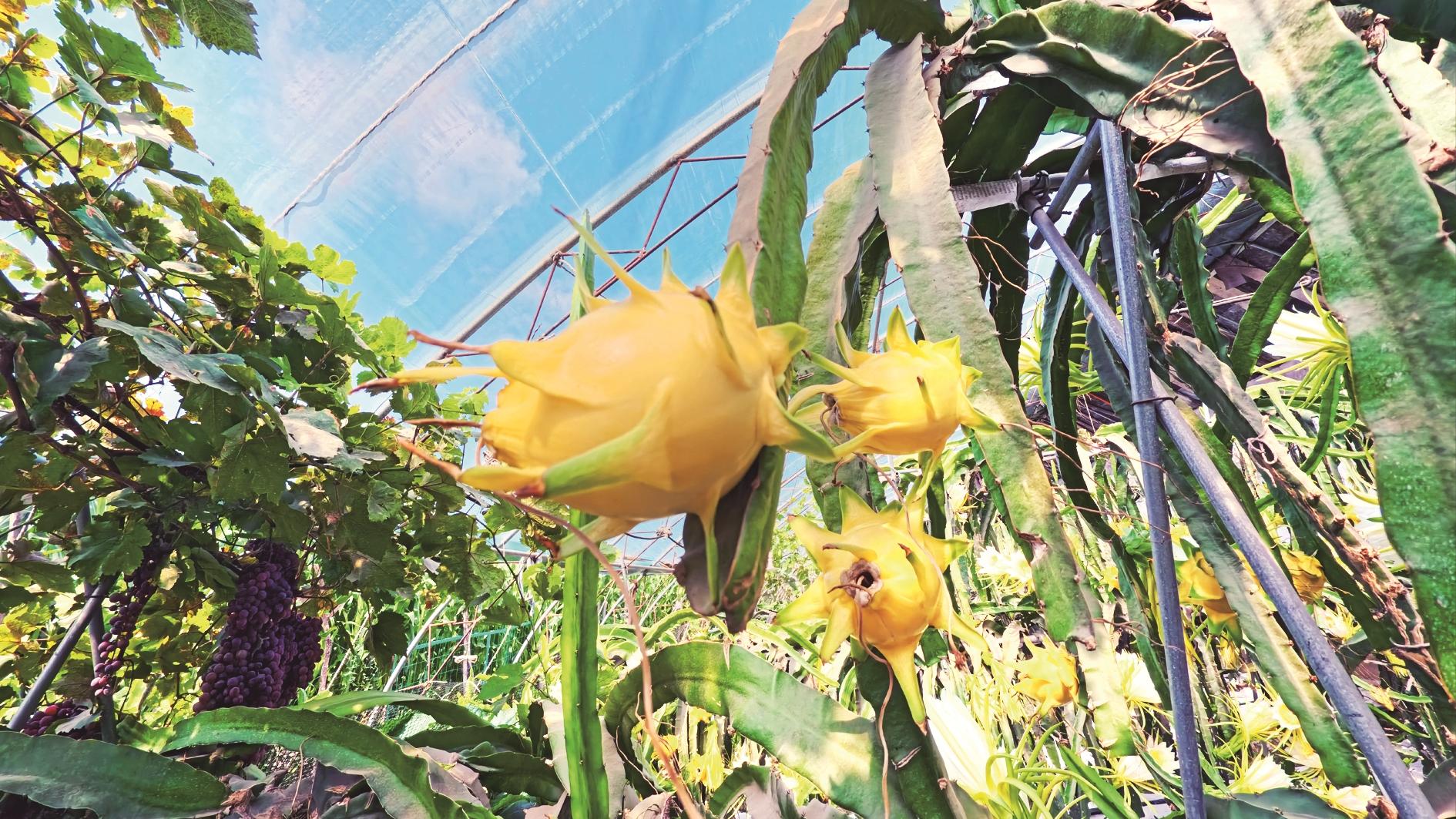 “火龙果的采摘期可以从每年的7月持续至来年春节前,其中从七月底到九月份是火龙果盛果期,也是采摘旺季。”张金说,他种出的火龙果一亩产量在3000公斤左右,每到火龙果盛果期,总会有市民前来采摘。