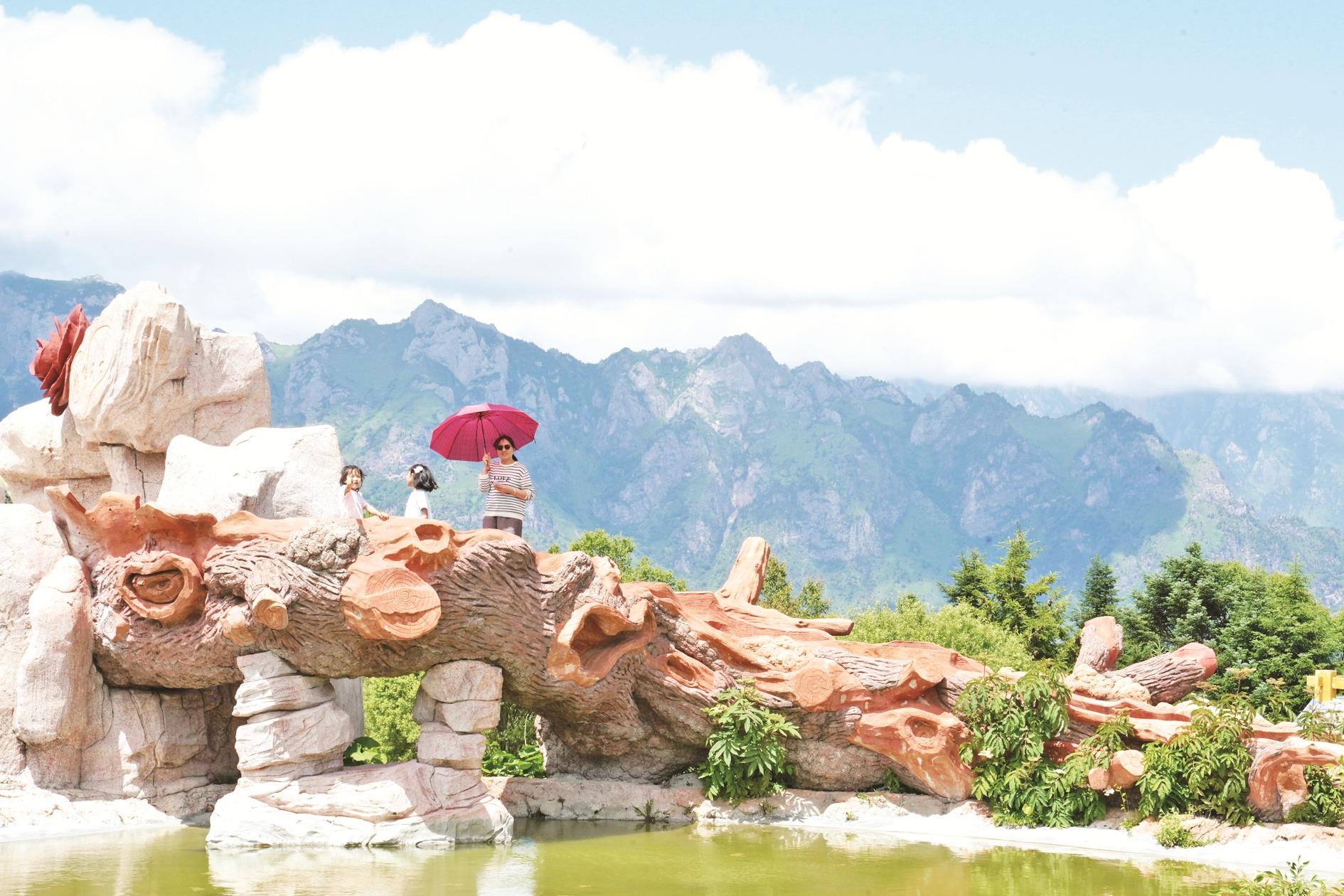 游客在舟曲拉尕山上游玩(7月12日摄)。