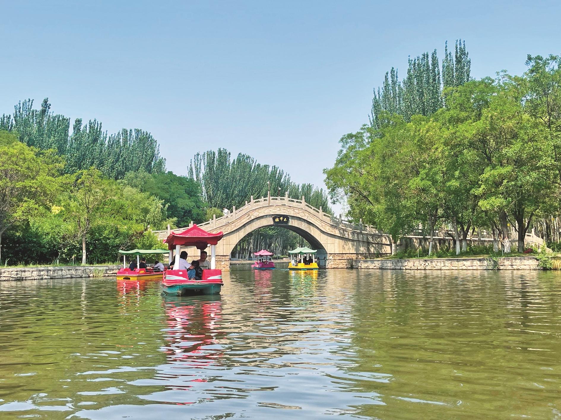 连日来,我市气温持续升高,市人民公园的湖面划船项目成为市民夏日消暑的热门选择。图为7月14日,市民在公园湖面划船游览,尽享“舟行碧波上,人在画中游”的惬意时光。(斯琴满都海 摄)