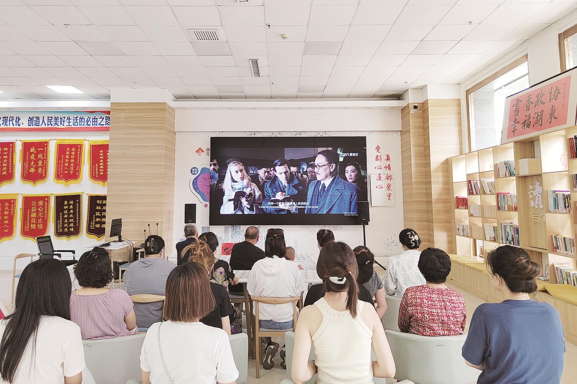 近日,海勃湾区滨河街道湖东社区党委组织开展了“观影忆峥嵘 红心永向党”观看红色电影活动。活动中,辖区党员群众一同观看电影《红星照耀中国》,重温中国共产党光辉历程和革命先烈英勇事迹。大家纷纷表示,要珍惜当下幸福美好生活,坚定不移感党恩、听党话、跟党走,为中华民族伟大复兴贡献一份力量。