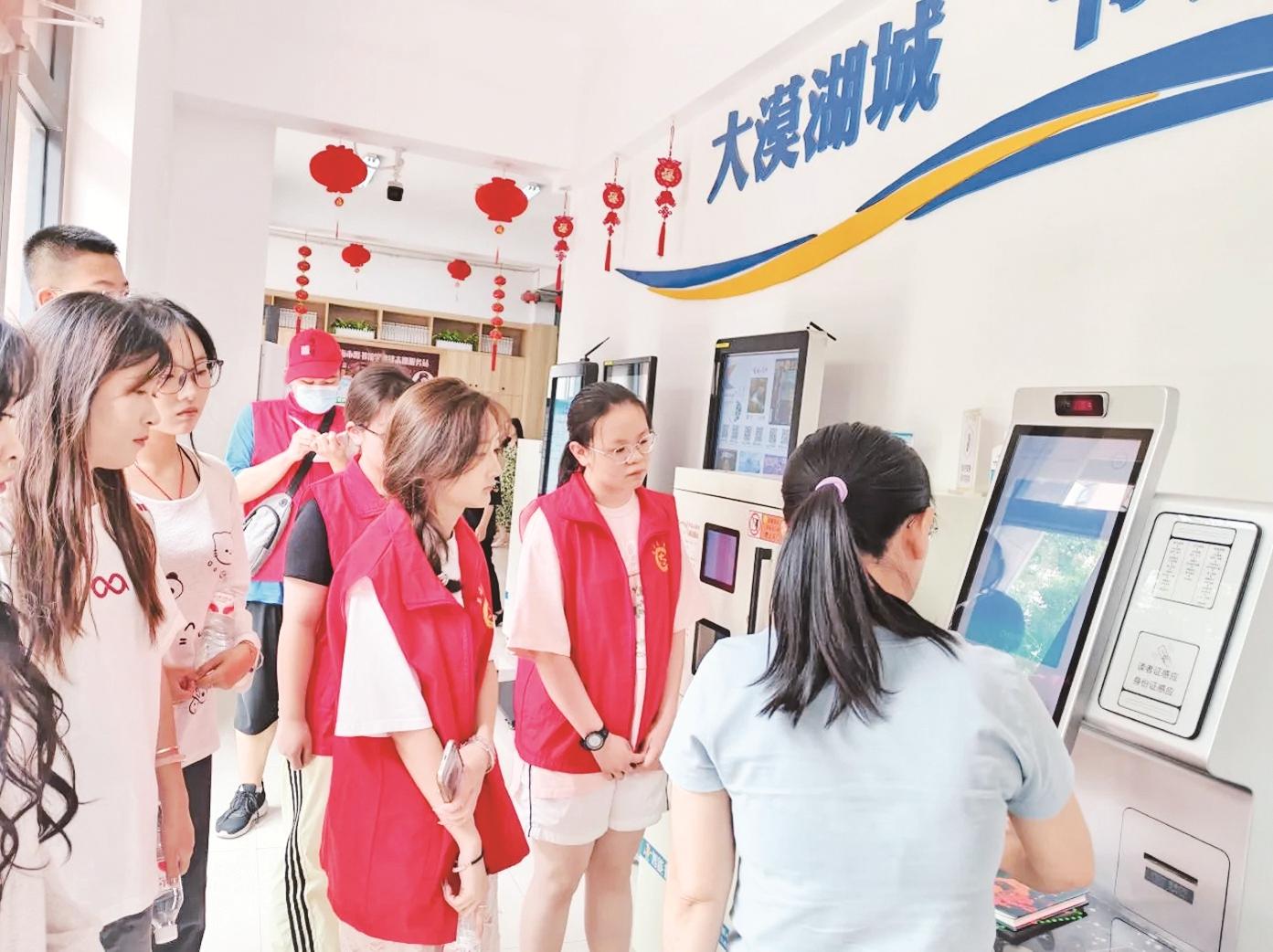 7月14日,市图书馆开展暑假志愿者岗前培训活动。活动中,图书馆工作人员带领志愿者实地参观了借阅服务区,了解图书馆馆藏分布、借还流程,并亲自体验了自助借还书机、自助查询机等智能设备的操作使用,为接下来的志愿服务工作打下坚实基础。 (靳婧 摄)