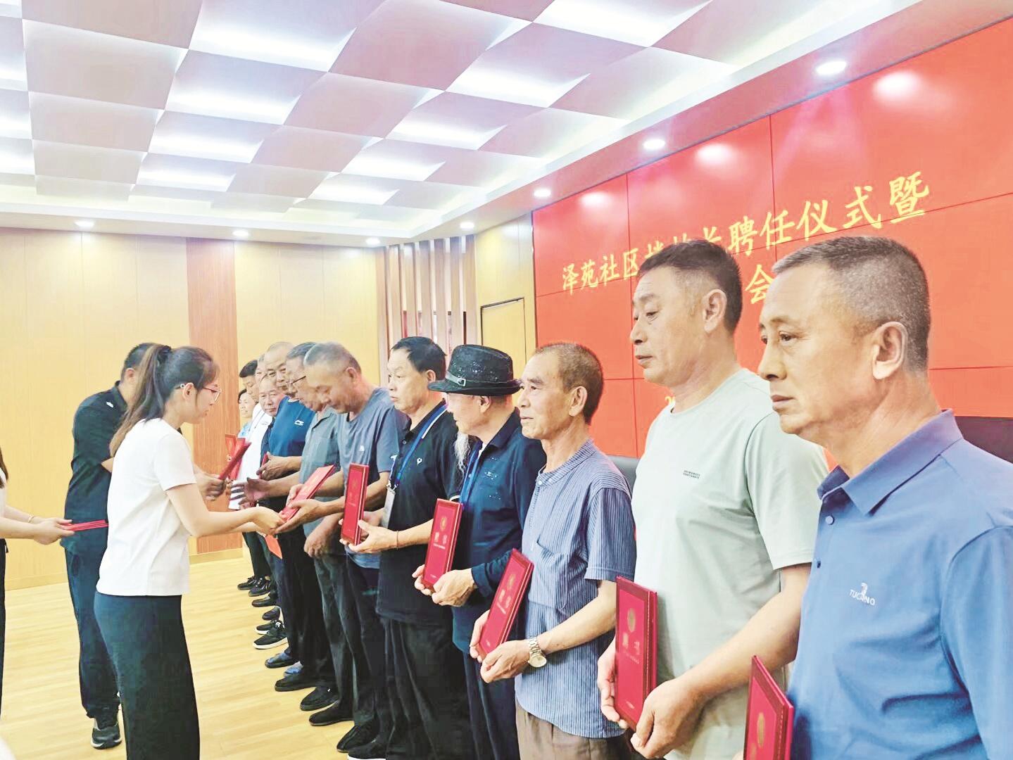 日前,海南区拉僧仲街道泽苑社区举办楼栋长聘任仪式暨培训见面会,积极发挥 “党小组+网格员+楼栋长” 的 “铁三角” 基层微治理作用,为社区治理添砖加瓦。(刘春霞 摄)