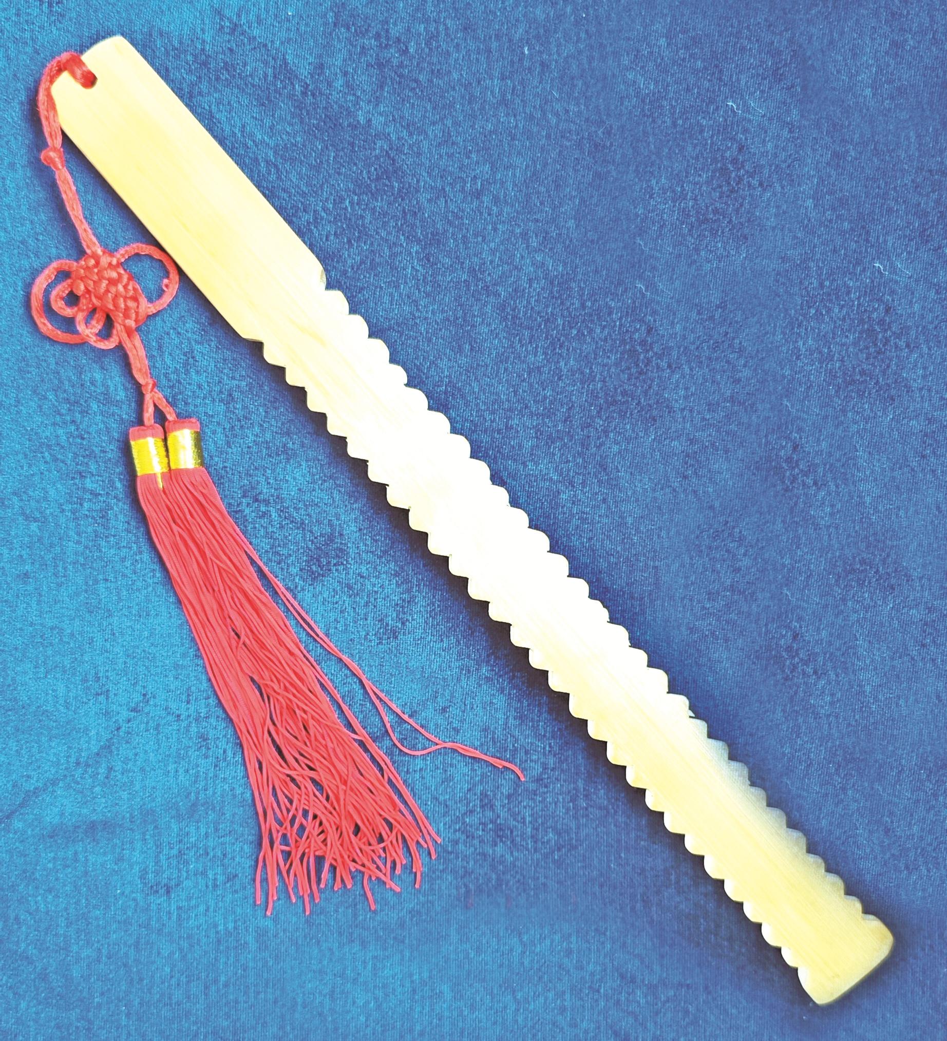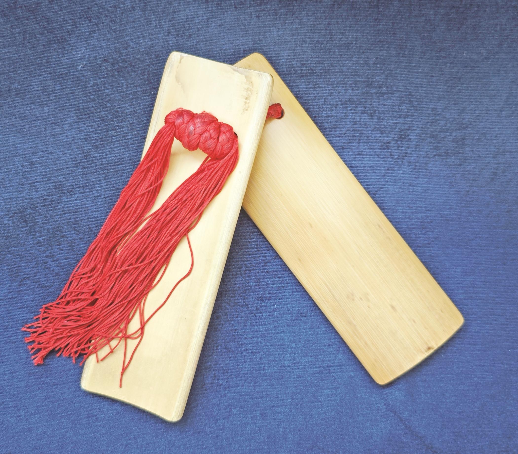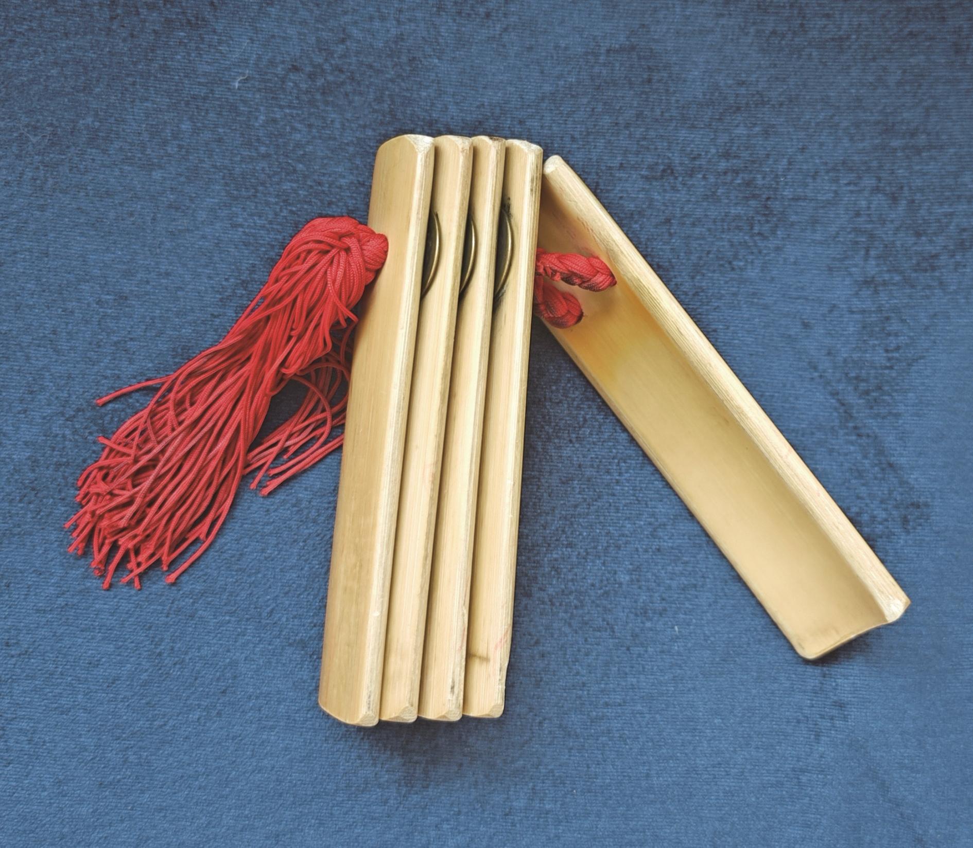 快板的“器”,是两块大板、五块小板组成的竹板,因材质得名“竹板”。表演者左手执小板,右手执大板,七块竹子的碰撞,能打出千变万化的节奏。其制作要经七道工序:采选老竹确保坚硬,切割成型,冷水泡制去除杂质,阴凉晾干防止开裂,精细打磨触感顺滑,按比例打孔,最后用丝线编辫穿连。每一道工序都凝聚着匠人的心血,稍有不慎,就会影响竹板的音质和手感。崔永生介绍道:“老艺人说,好的竹板要‘响而不燥,沉而不闷’,其实就藏在这些工序中。你看这竹板,都是选的老竹子,泡制、晾干都有讲究,差一点,声音就不对了。我这副竹板,跟着我好多年了,声音越打越浑厚,就像老朋友一样。”