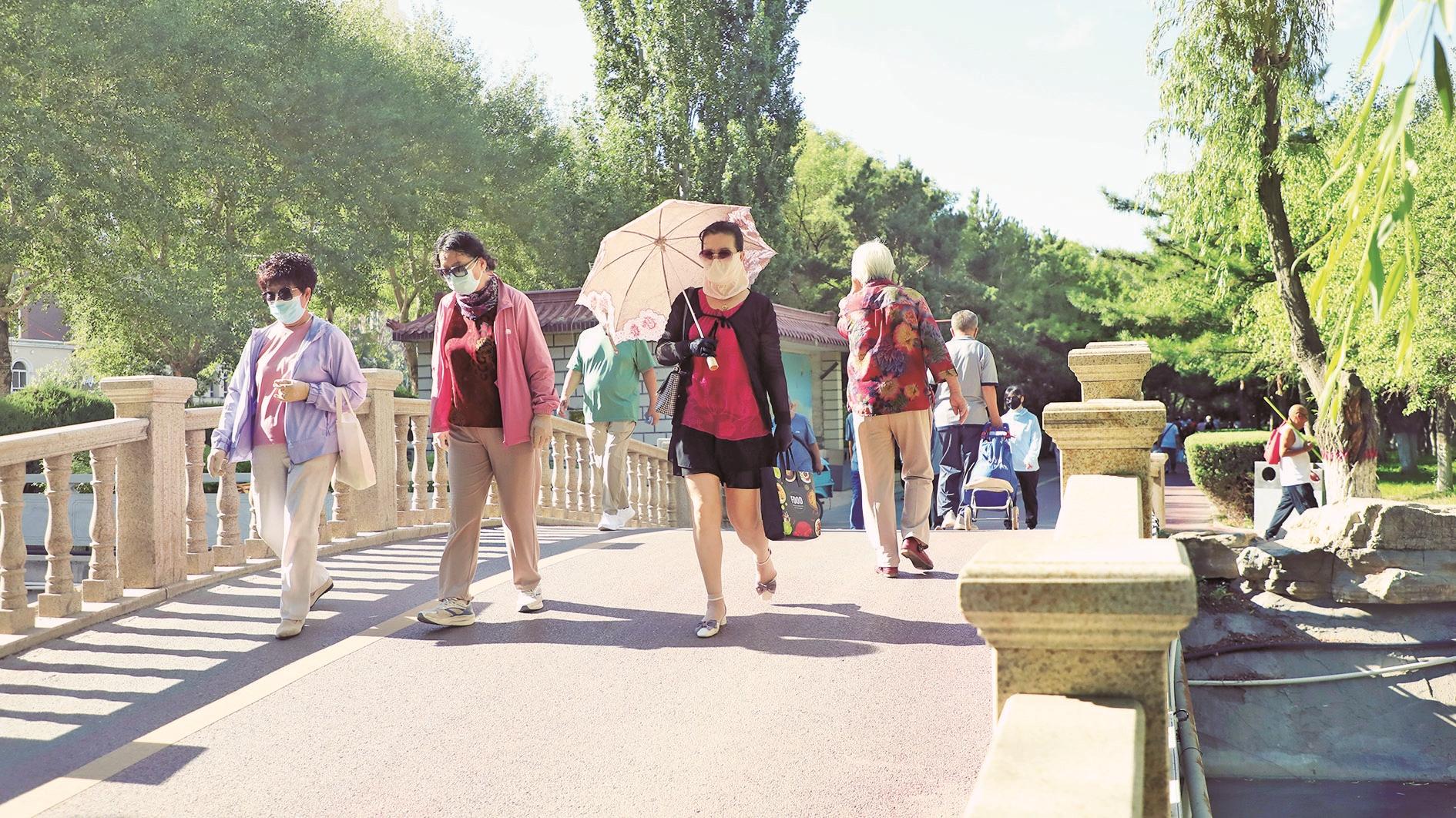 市民漫步于市人民公园中。(赵政宇 摄)