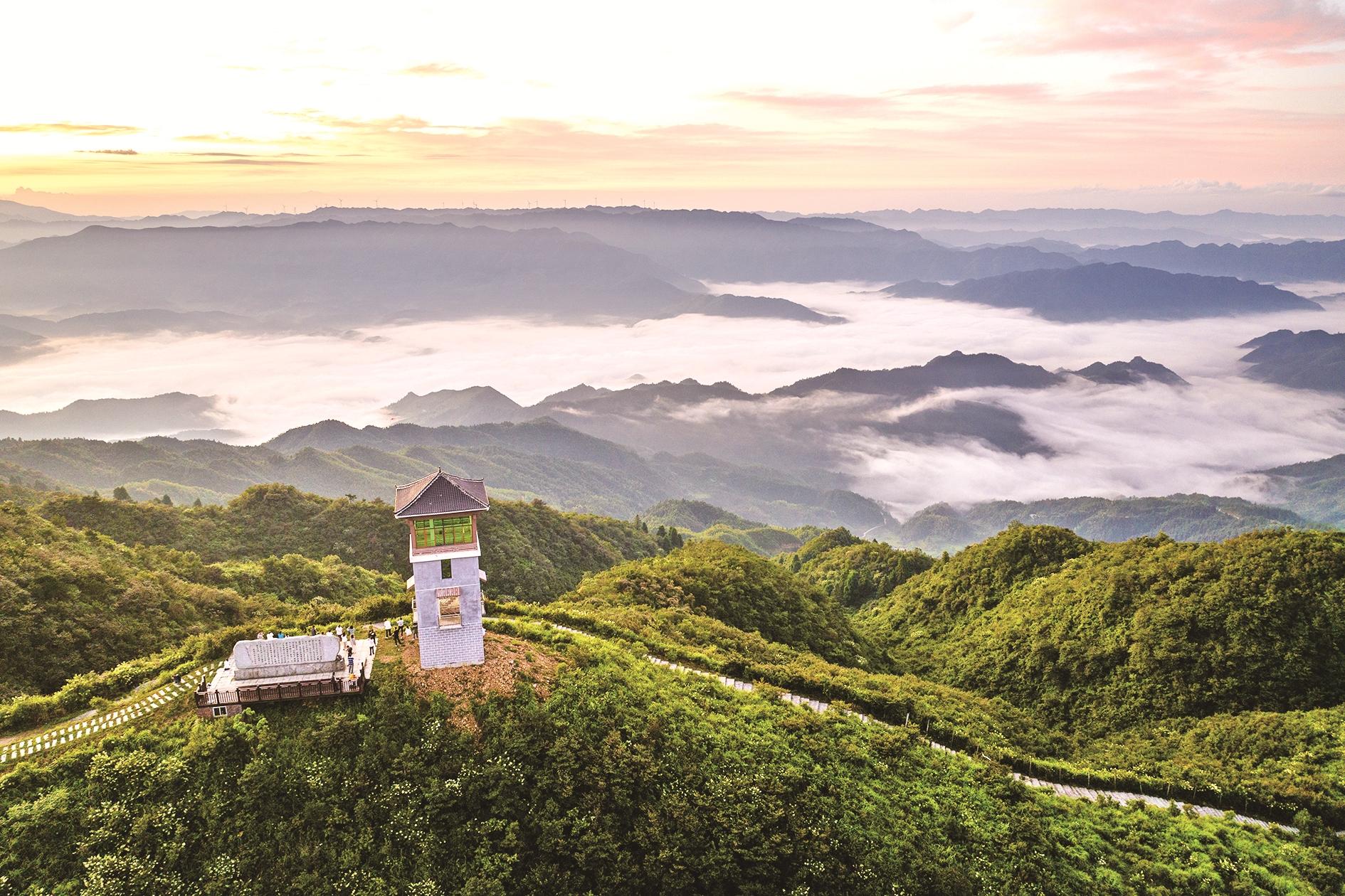 这是7月30日在湖南怀化雪峰山国家森林公园拍摄的日出云海景观。盛夏时节,湖南怀化雪峰山国家森林公园吸引了各地游客。一些游客赶在日出之前登顶,欣赏日出云海美景。