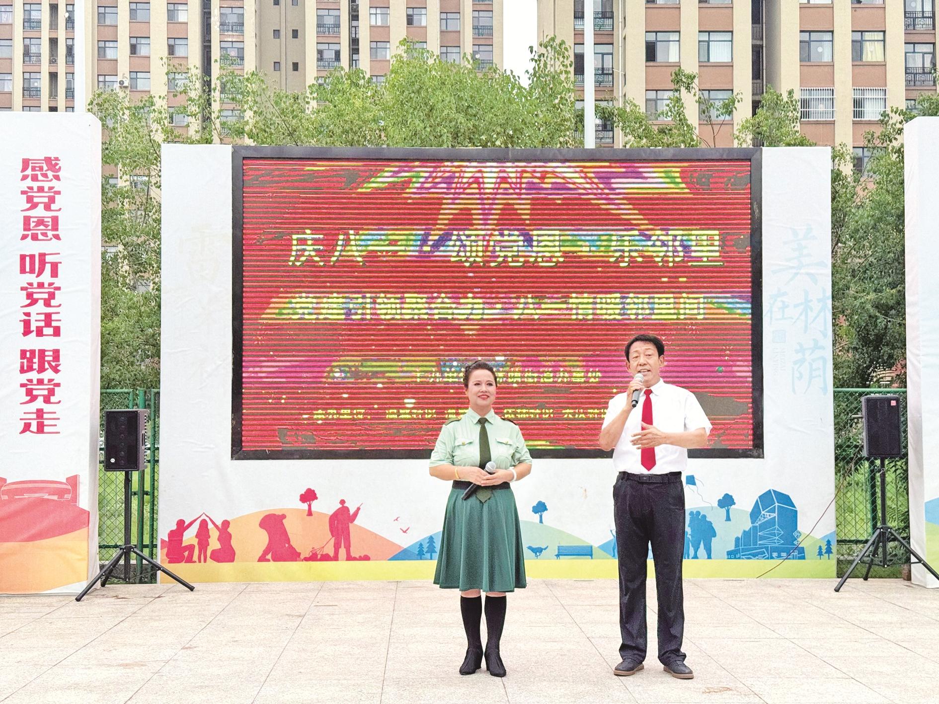 8月1日,由海勃湾区林荫街道办事处主办,温馨社区、海馨社区、依林社区、大庆社区、金裕社区协办的“庆‘八一’ 颂党恩 乐邻里——党建引领聚合力 ‘八一’情暖邻里间”文艺活动在海勃湾区海馨社区举办。舞蹈、器乐演奏、合唱等节目轮番上演,为辖区居民送去欢乐。 (张靖爽 摄)
