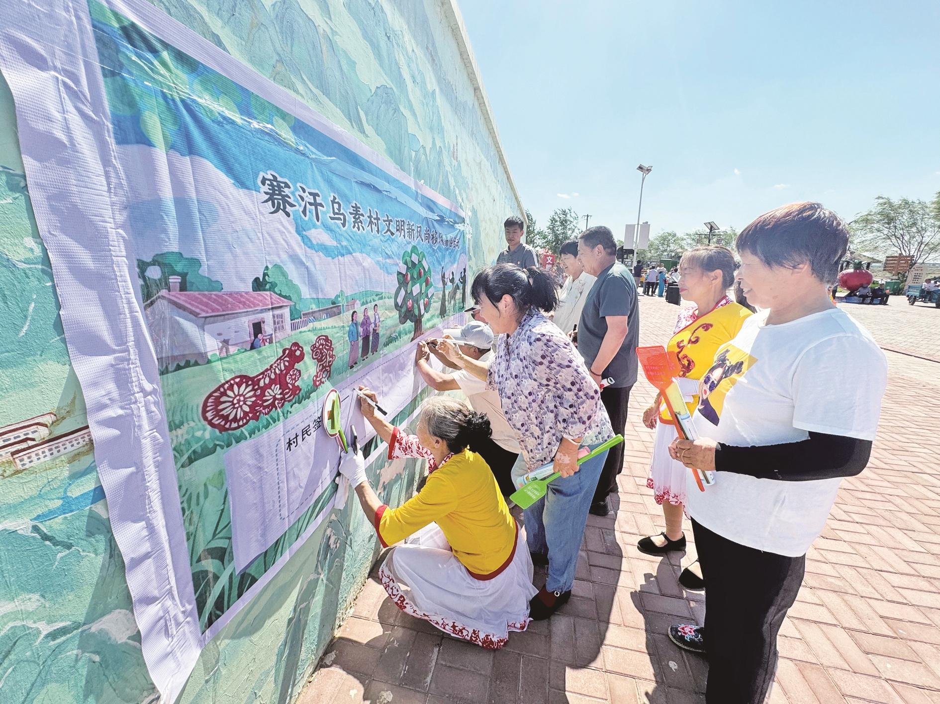 “村容村貌换新颜,红白喜事不铺张,志愿服务暖人心……”村民自编自演的三句半《文明新风进咱村》引发阵阵喝彩,让移风易俗理念在欢声笑语中入脑入心。“民俗大闯关”设置两大互动摊位,成为活动最热闹的区域。“风俗天平”游戏中,村民听工作人员说出“高价彩礼”“随礼攀比”后将沙包对应投入“革新”筐,听工作人员说出“孝老爱亲”“勤俭节约”后将沙包对应投入“保留”筐,直观展现对传统习俗的取舍。活动最后,大家在“文明新风尚画卷”上签名承诺,笔尖划过之处,皆是对文明新风的向往。