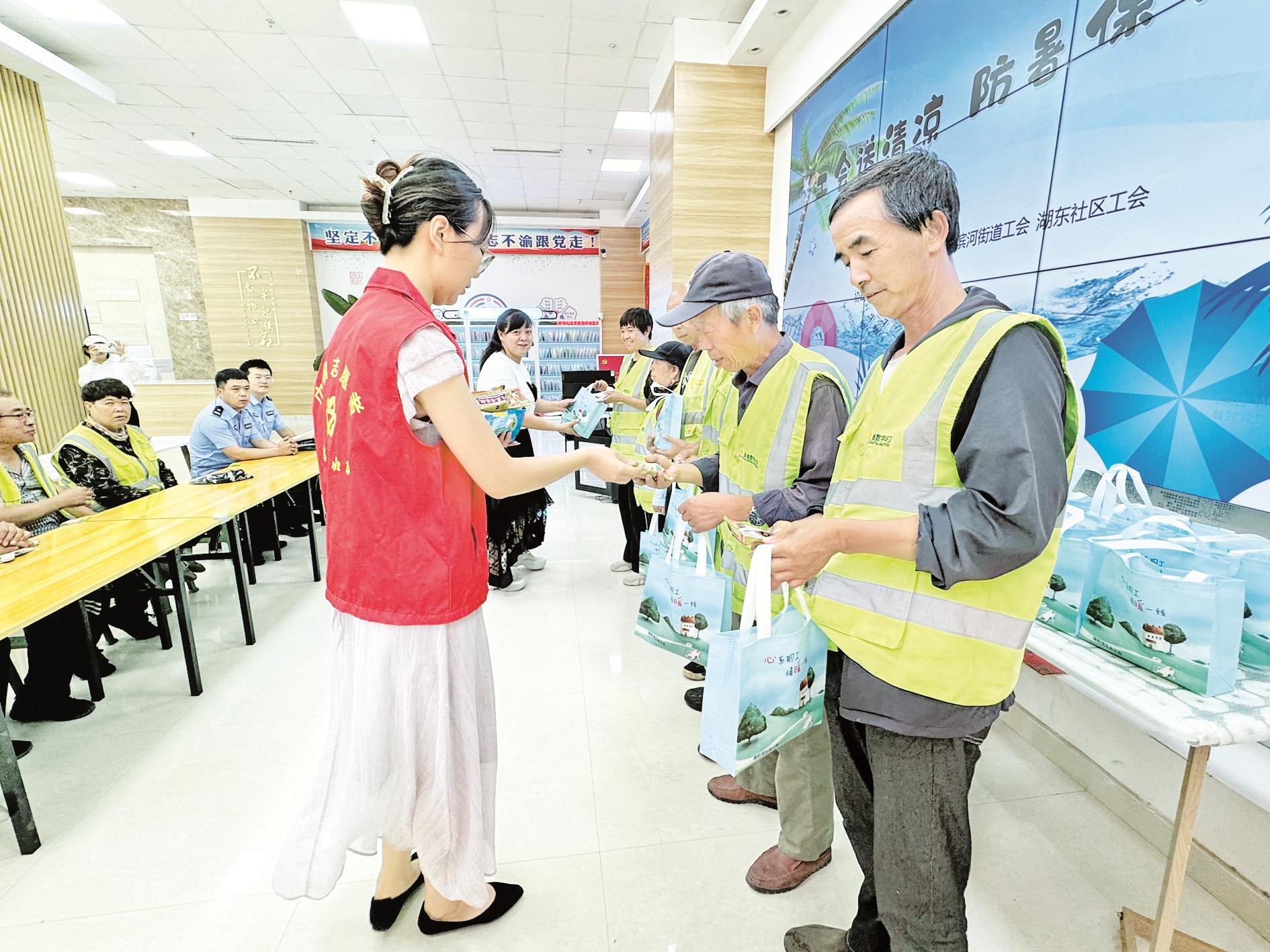“我在湖东社区周围清扫环境卫生4年了,夏天热了冬天冷了,我都会进社区的‘暖心驿站’休息休息,喝口水,这儿的工作人员也特别好。”环卫工人田共和抹了把额头的汗水,端着驿站提供的绿豆汤笑道。连日的高温天气,像田共和这样的户外工作者们,正通过“湖东送清凉 防暑保安康”专项活动深切感受着驿站的温情。这场由海勃湾区总工会支持的夏日关怀行动,让快递员、交警、环卫工人等群体在忙碌间隙,能随时走进驿站享受片刻清凉。