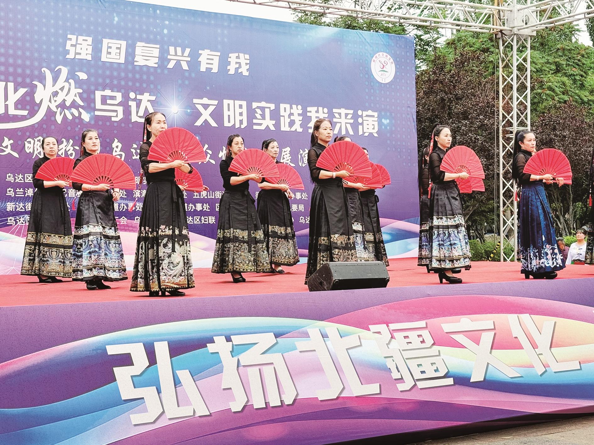 以群众之力,点亮文化之光。近日,“北疆文化燃乌达?文明实践我来演”群众性文艺展演活动在乌达区人民广场举行。这场以群众演出为核心的活动,真正实现了“群众创作、群众表演、群众欣赏”,让“群众舞台百姓乐”成为现实。现场,音乐、舞蹈、戏剧等多种艺术形式轮番登场,每个节目都经过精心编排与打磨,充分展现了乌达人民的才艺与风采,生动诠释了城市的文化底蕴,彰显出蓬勃向上的时代精神。现场观众沉浸其中,掌声、欢呼声此起彼伏。“这些作品贴近生活、贴近百姓,接地气、冒热气。”市民张霞芳说。