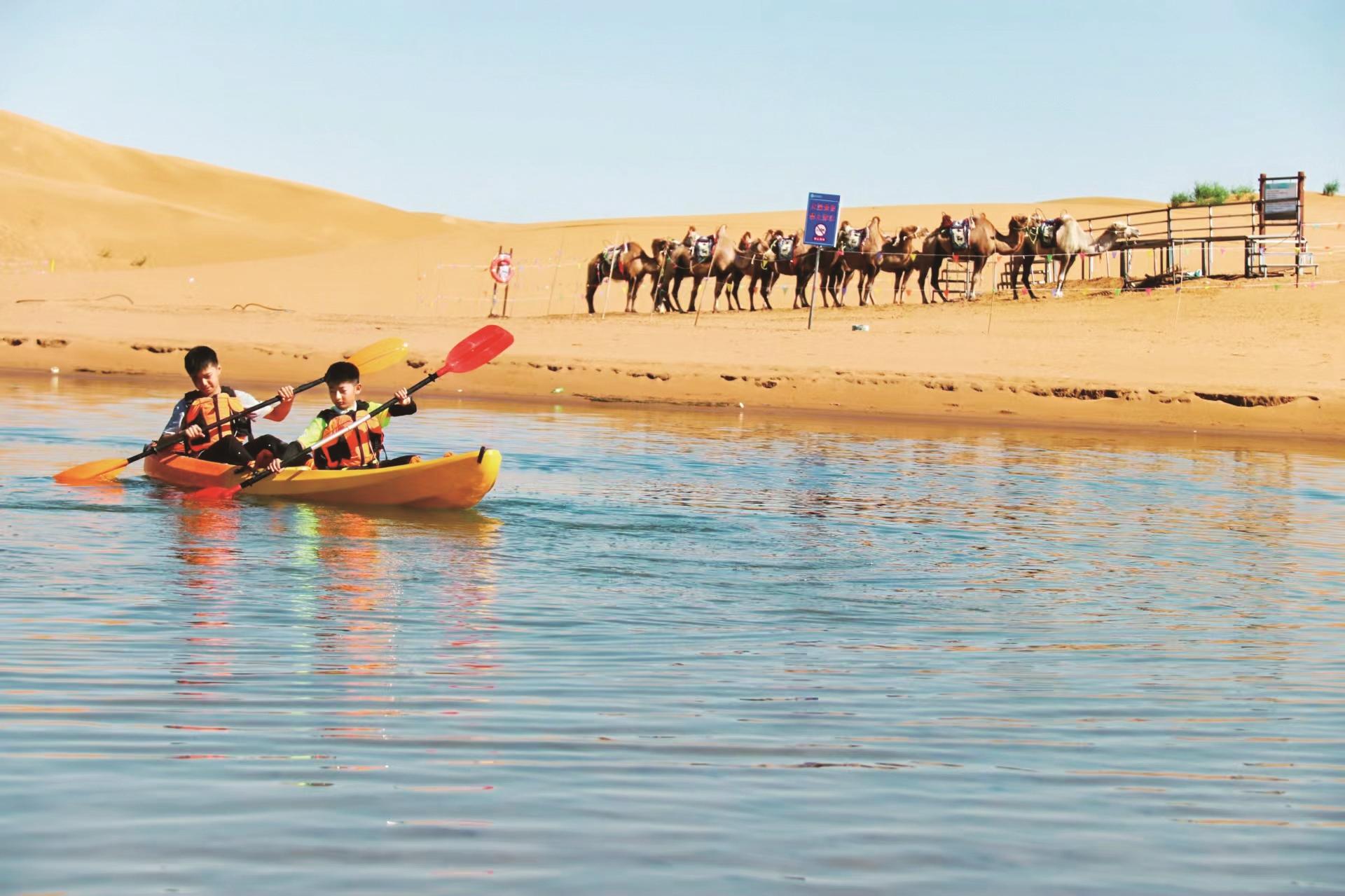 易禾说,更让他着迷的是周围的风景——对岸高耸的甘德尔山,不远处若隐若现的沙漠,湖畔恬淡的田园,划艇时边行边赏景,成了最惬意的享受。