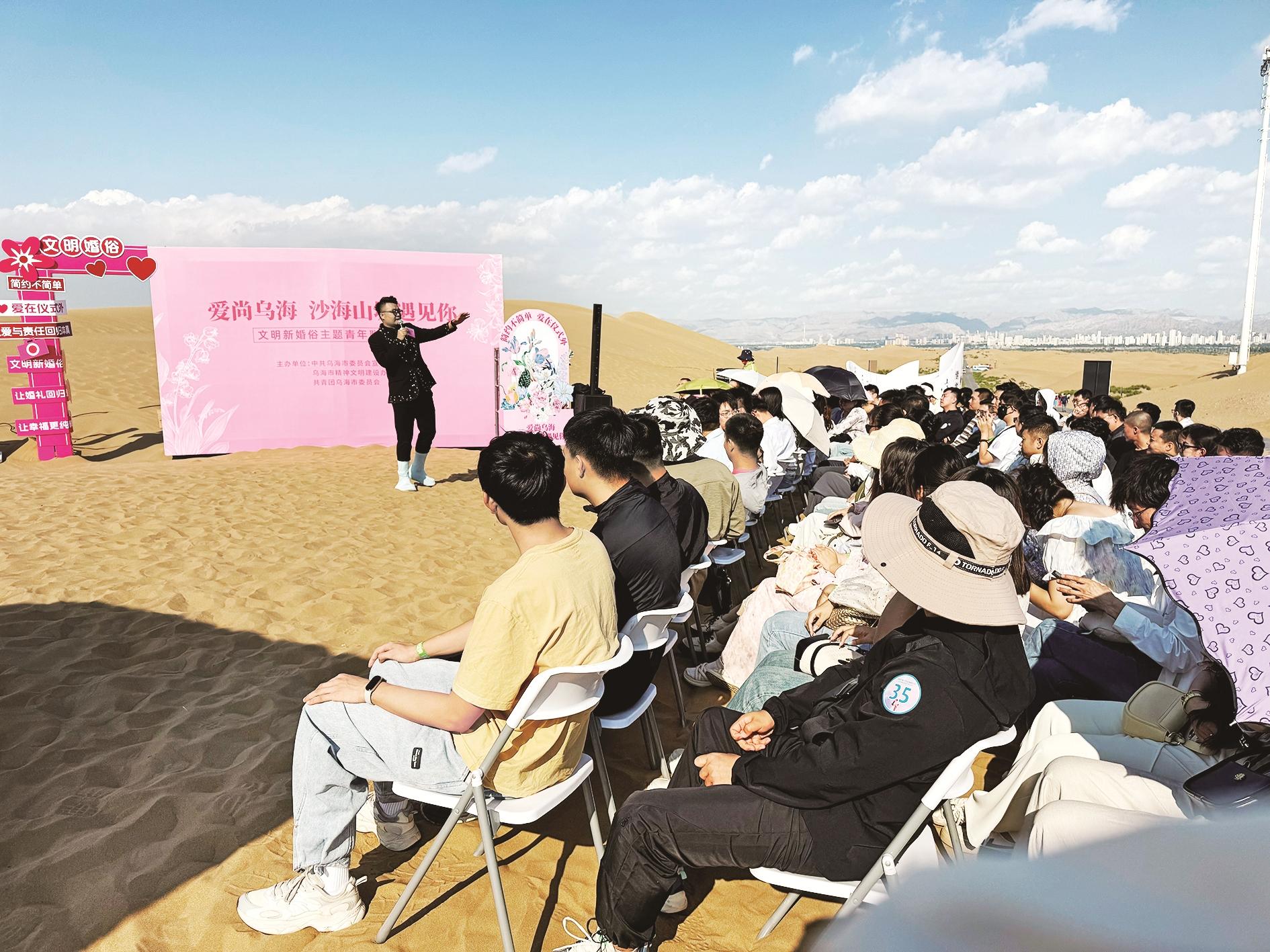 8月23日,市委宣传部、市文明办、团市委联合举办“爱尚乌海 沙海山城遇见你” 文明新婚俗主题青年联谊活动,100名青年参与活动,引导青年树立文明、健康、理性的交友观和婚恋观。 (段维娜 摄)