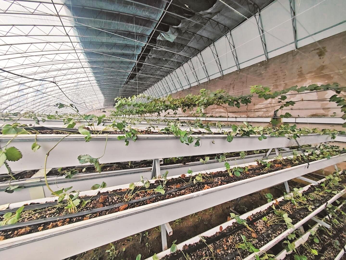 日前,记者走进海勃湾草莓科技小院,实验棚内3.5万株草莓新苗长势良好。翠绿叶片在阳光下熠熠生辉,工人们正进行精细化管护。这批今秋引进的种苗采用新技术培育,为丰收奠定坚实基础。(刘春霞 摄)