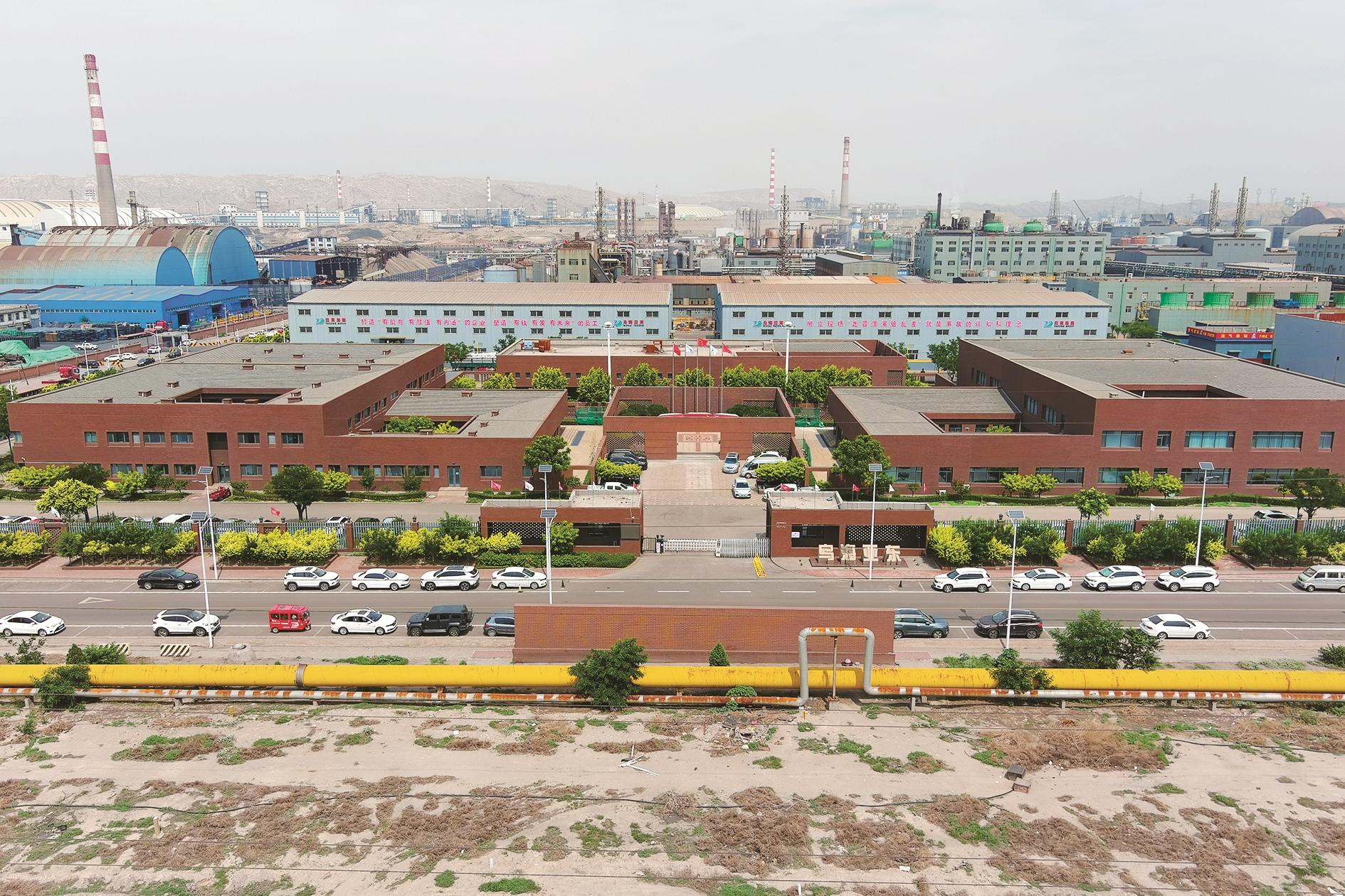 内蒙古乌海亚东精细化有限公司位于乌海高新技术产业开发区海南产业园,是一家专业从事精细化学品研究、开发和生产的高新技术企业,其已投产的萘系列产品项目和将建设的硫铁矿制酸集成装置项目进一步延伸我市煤焦产业链条,显著提升相关产业产品的附加值。公司生产的产品国际市场占有率达60%,国内市场占有率达50%,其牛仔服应用染料已成为亚洲最大最强染料系列。图为近日记者拍摄的内蒙古乌海亚东精细化有限公司一角。 (鲁吟 摄)