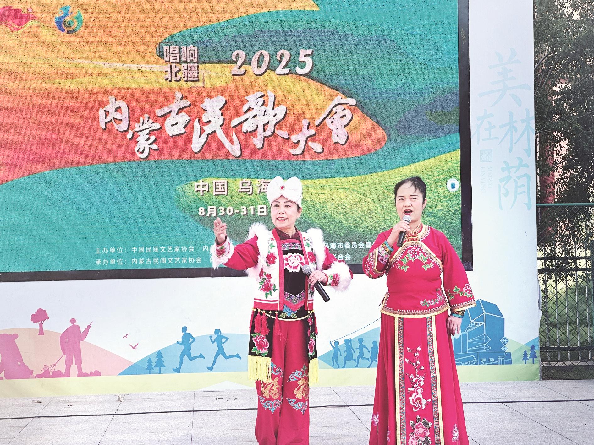 8月31日,“唱响北疆”2025内蒙古民歌大会文艺志愿小分队走进海勃湾区林荫街道海馨社区,为居民献上精彩演出。开场舞《宴歌》奔放热情,二人台山曲质朴动人,马头琴重奏《万马奔腾》激昂磅礴,生动展示了内蒙古民族艺术魅力,促进了民族文化传播交流。(孙怀敏 摄)