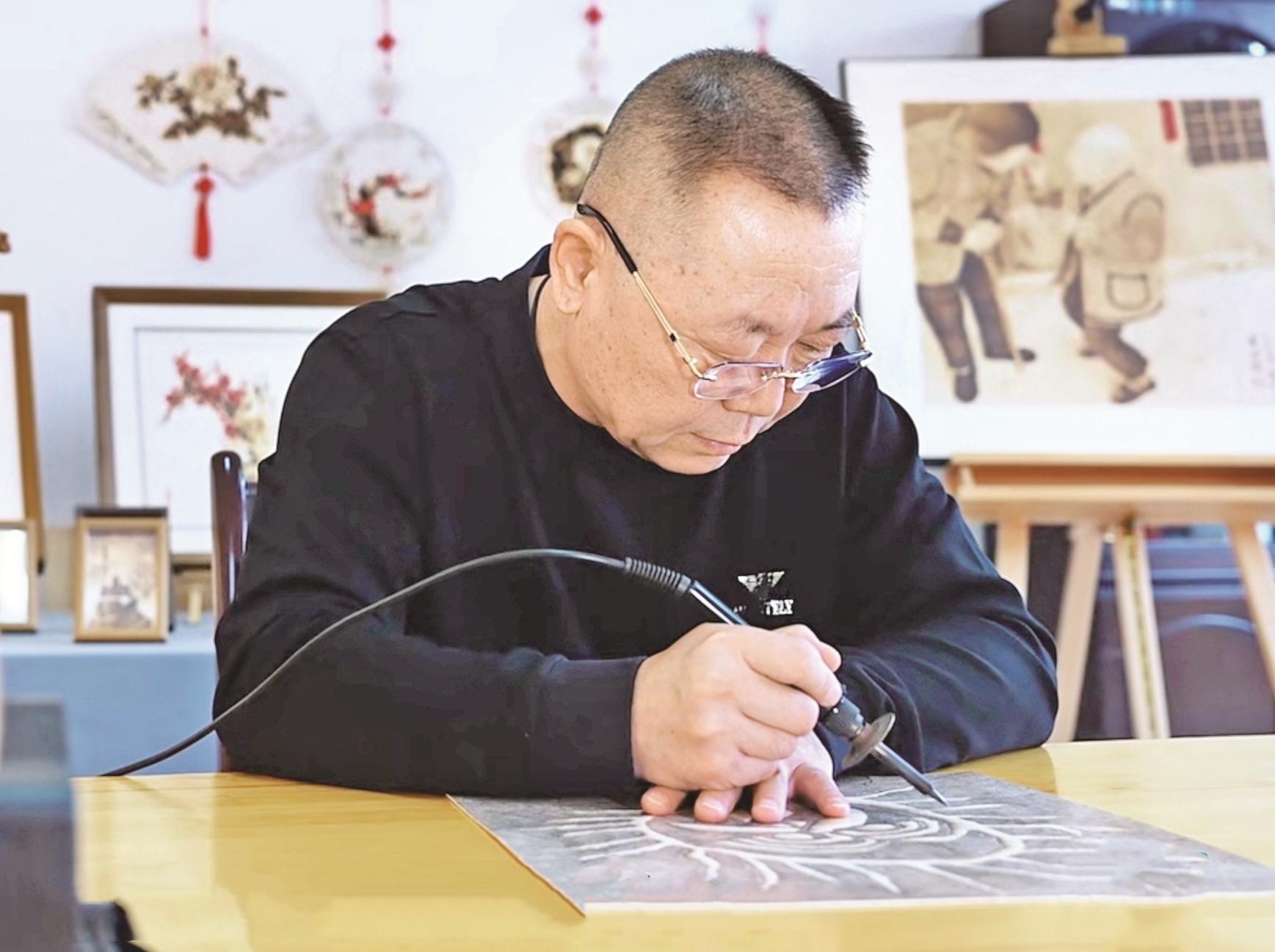 翟钊的烙画题材广泛,山水、人物、花鸟、走兽等皆有涉猎,以太阳神岩画为素材的烙画古朴雄浑,人物烙画栩栩如生,十二生肖烙画妙趣横生。他的作品不仅在艺术审美上具有较高价值,还承载着他对传统文化的热爱与传承的责任感。翟钊说:“我还会继续深入研究传统文化和烙画的结合,创作出更多精品,让烙画这一传统手工技艺绽放出更加璀璨的光彩。” (张文杰 文/图)