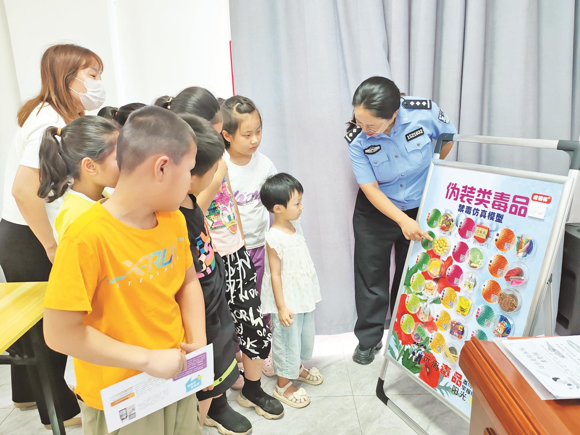 近日,市强制隔离戒毒所民警走进海勃湾区新华街道和谐社区开展禁毒宣传教育,通过真实案例讲解、带领孩子们认识毒品等方式,提高未成年人识毒、防毒、拒毒意识和能力。 (张楚研 摄)