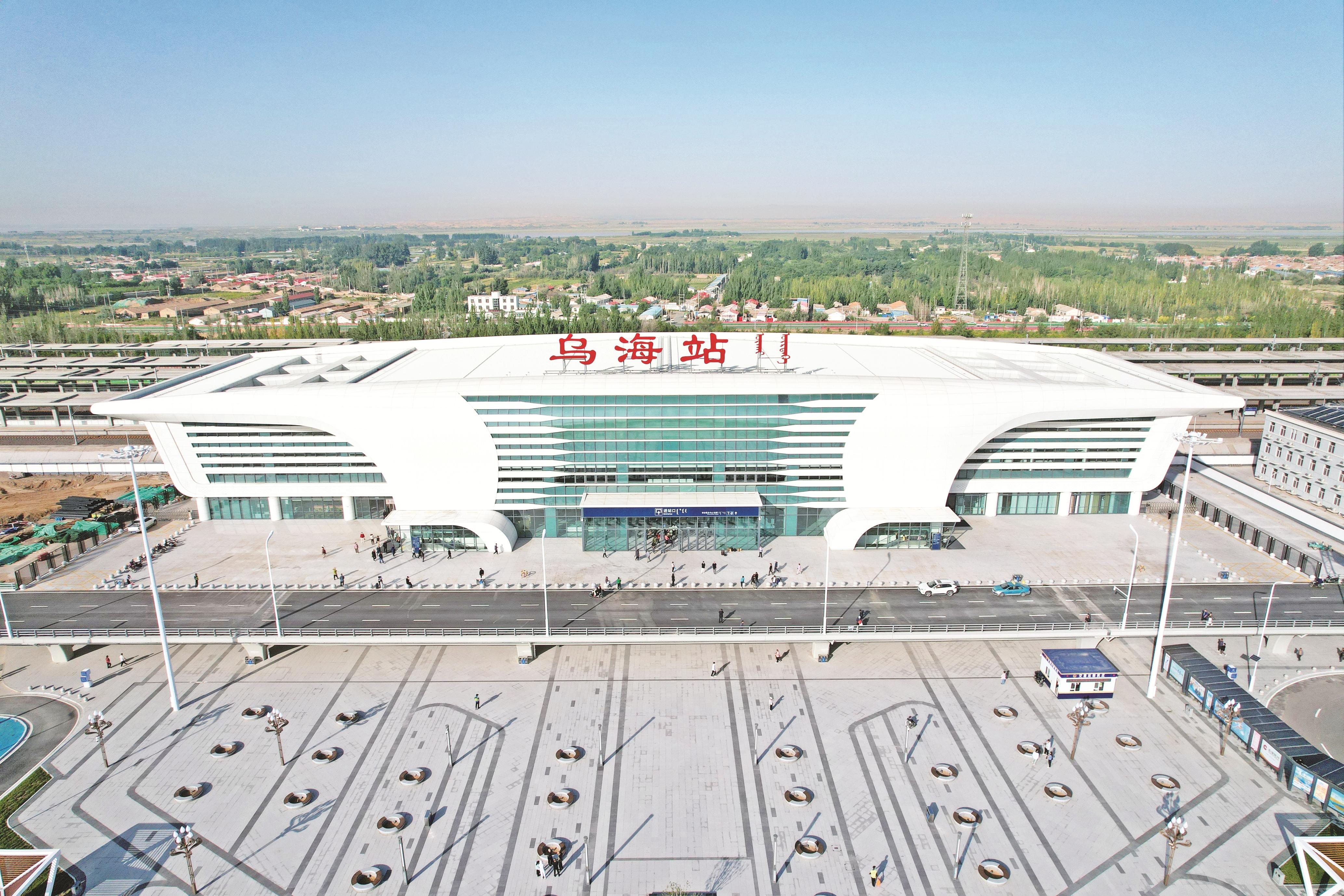 9月8日正式投入使用的乌海站选址于林荫大道北、110国道东侧、乌海市客运枢纽站西北侧。车站采用高铁和普速列车一体化设计,总建筑面积约10000平方米,设地上两层、地下一层,建筑高度达21.79米,站场规模为4站台11线,可高效承接不同类型列车的客运需求。