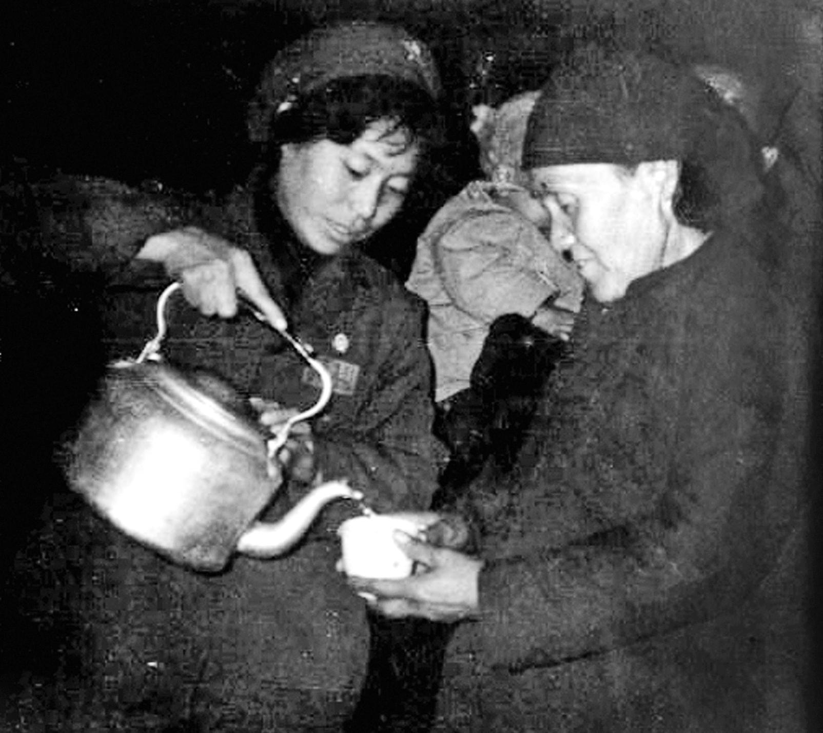 上世纪七八十年代,没有“火车票预售”一说,当日当次车票在开车前一两个小时才销售。每逢年关,人人都急着回家过年,火车站人满为患,能不能顺利回家,拼的就是“挤”的本事。若想在车上喝水,也不像现在可以买到瓶装水,或是到车厢连接处接到热水。当时的列车上是有专门的供水员,负责用车载茶炉烧水,为旅客提供热水。旅客几乎人手一个茶缸等着供水员送水。送水的水壶是白铁皮焊制,供水员一次提两大壶热水,放在推车上为旅客挨个倒水。