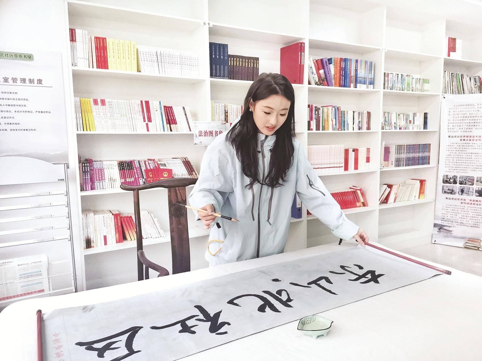 在海勃湾区海北街道办事处东山北社区的党群服务中心,有一间占地20多平方米的社区书屋颇受居民青睐。这里有藏书1000多册,涵盖了科普、文学、时政、生活、教育等十几个门类。这里还放置了一张写书法的桌案,辖区里的书友常常来这里阅读、借书,有时还要挥毫泼墨,将书法元素浸润在家门口的这个小书屋里。
