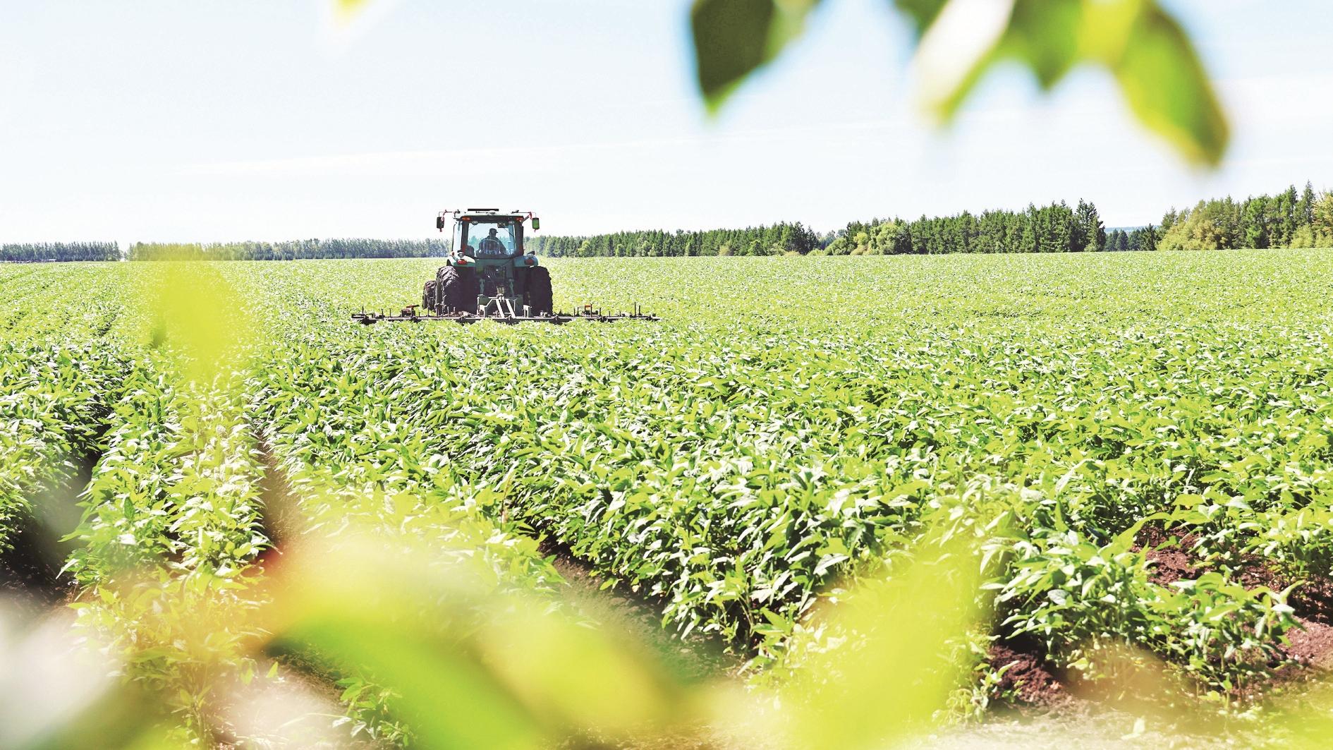 在北大荒集团黑龙江红星农场第一管理区有机大豆田里,搭载北斗导航系统的大马力机车开展有机大豆二次中耕作业(2025年7月7日摄)。 新华社发(侯越 摄)