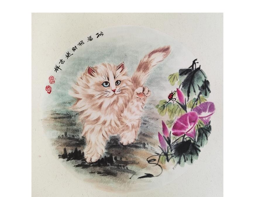 在学画的过程中,他的目光始终追随着画坛中那些以画猫闻名的前辈大师,取各家之长,探寻属于自己的画猫之道。