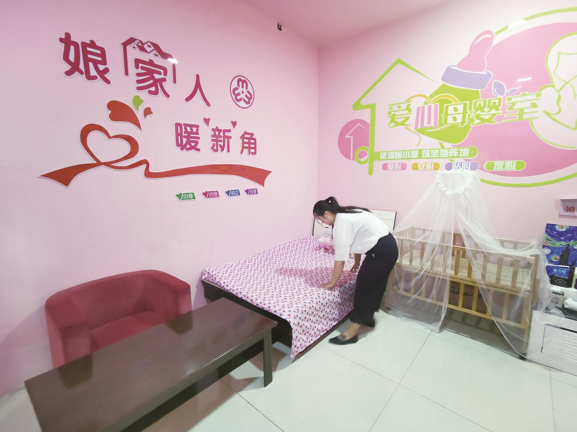 在海南区银光百货商场一楼,有一个“娘家人暖‘新’角”。这里放置了饮水机、急救包、女性用品、防寒消暑用品等,为商业区女性新就业群体提供服务。