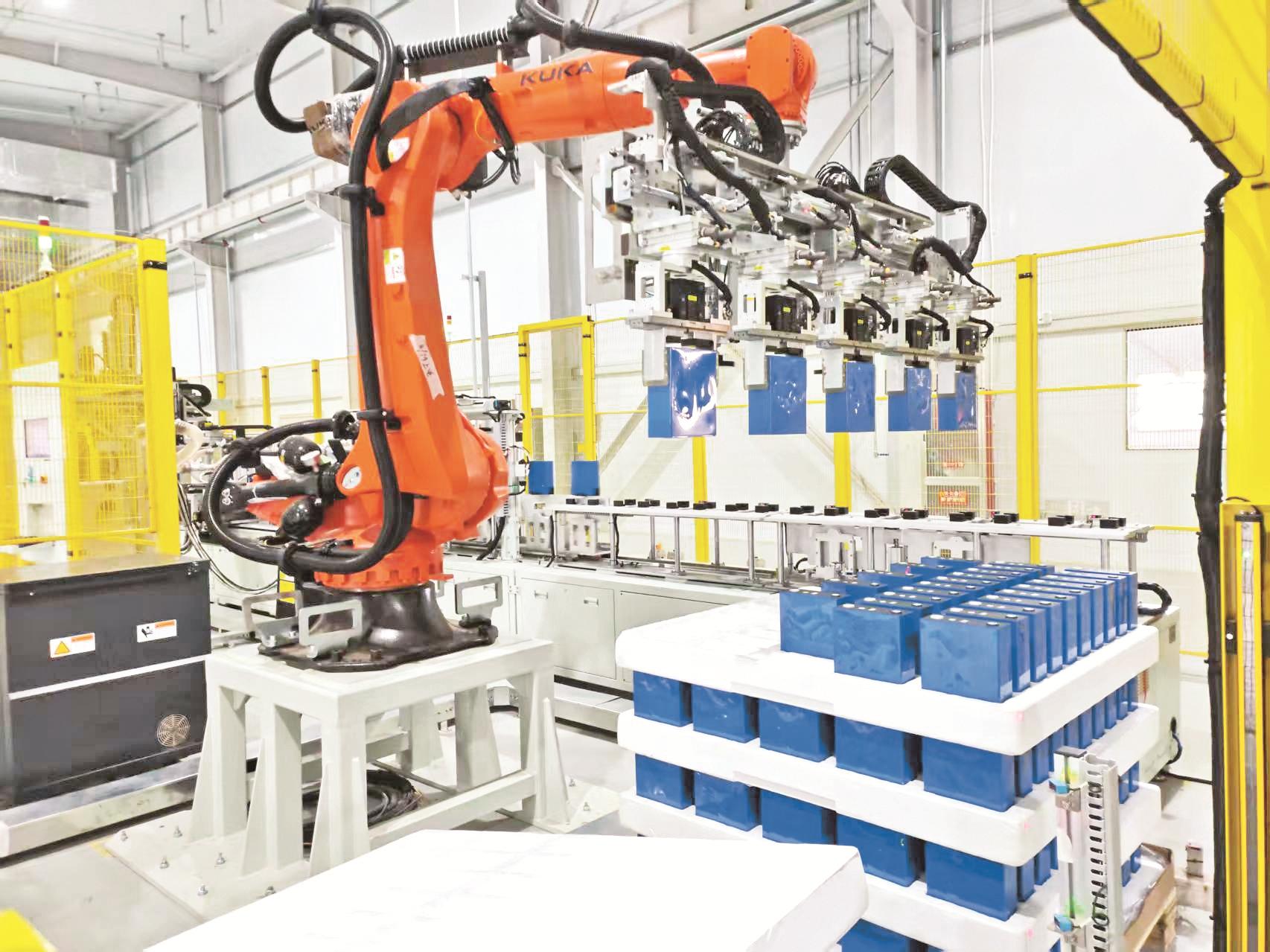这一公司成立于2023年11月,是清陶(昆山)能源发展集团股份有限公司的全资子公司。项目总投资约70亿元,分三期建设,计划建设5万吨固态电池专用材料、1000万千瓦时固态电池和储能系统以及配套的风光新能源与储能电站。其中,一期2万吨固态电池专用锰系正极材料生产线项目建设3条生产线,于2024年5月开工建设。图为二期PACK车间调试场景。 (赵晖 摄)