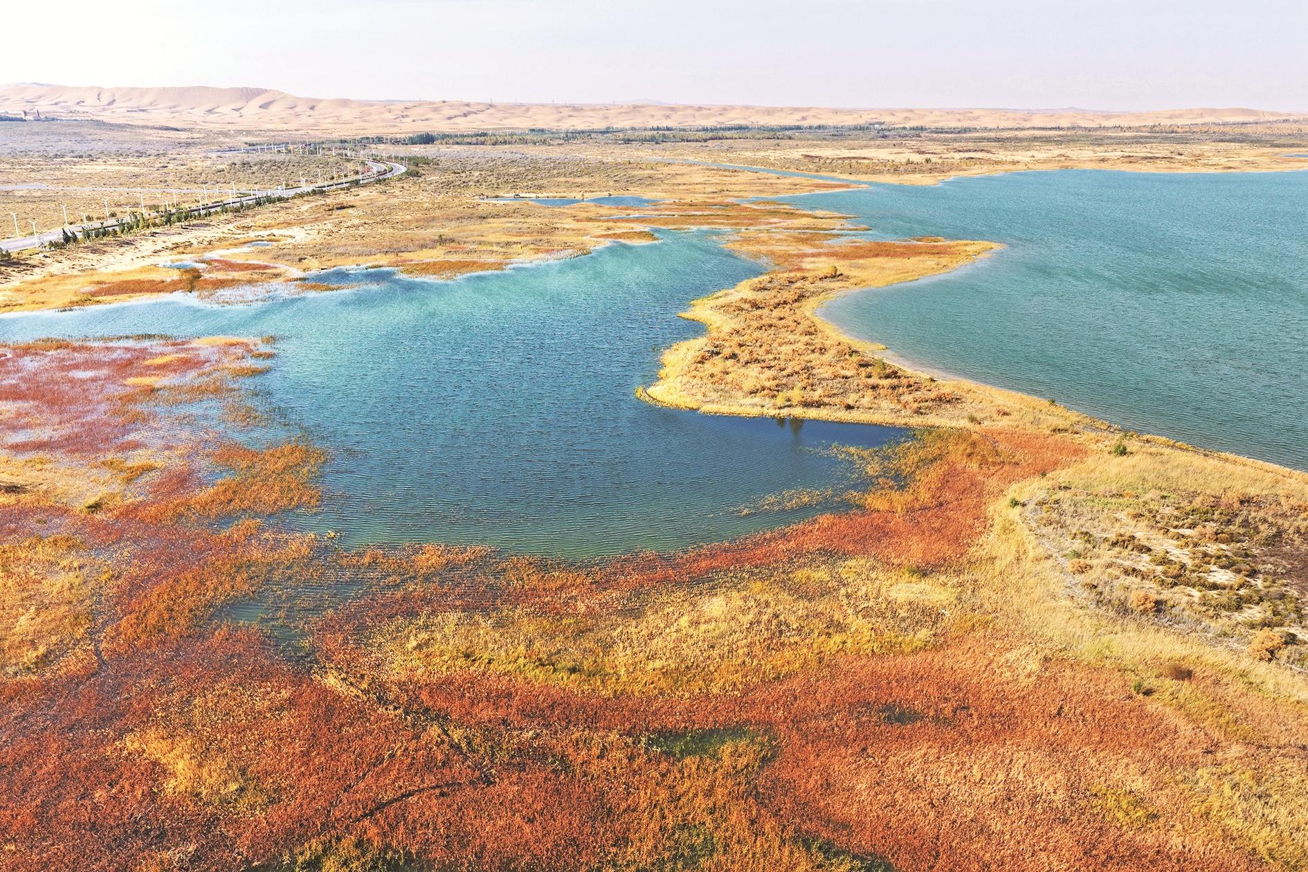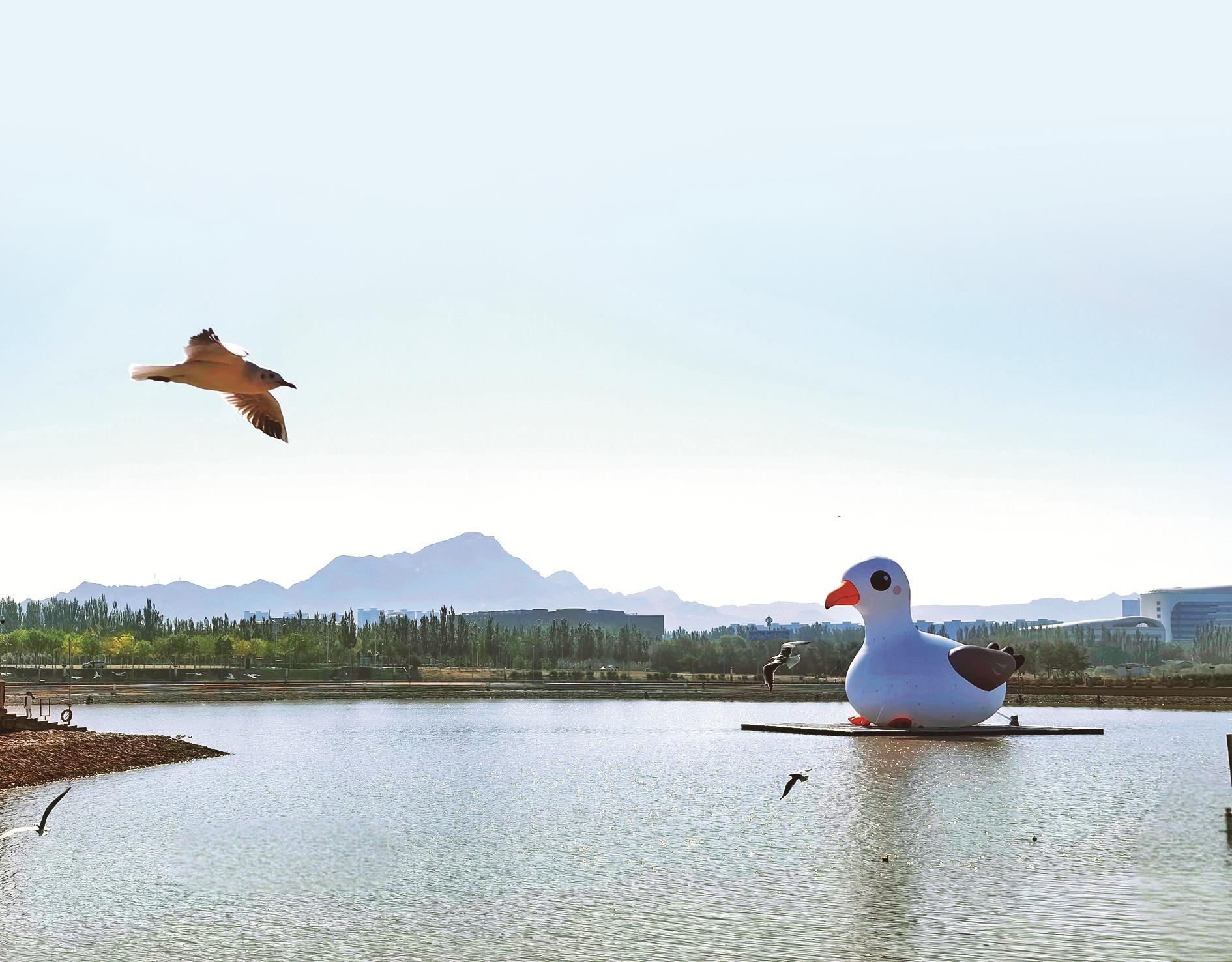 站在乌海湖畔旁,看着一片阳光洒在波光粼粼的水面上,泛着细碎的金光。在这充满诗意的秋色里,主角“红嘴鸥”天团准时赴约。它们穿着“白衣红鞋”,时而在波光粼粼的湖面上轻盈滑翔,时而一个猛子扎下去,精准捕获水中的美味。