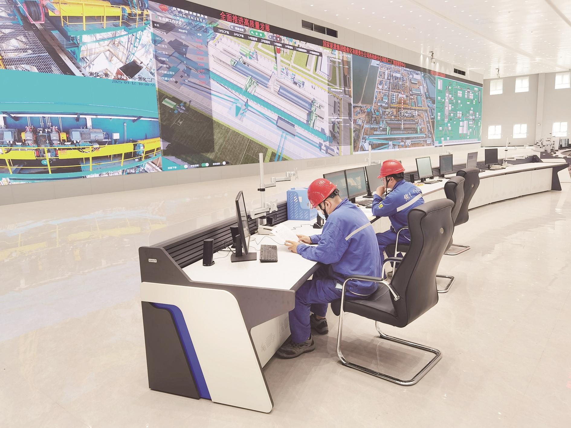 近年来,国家能源集团煤焦化西来峰公司按照高端化、多元化、低碳化发展要求,开展了360万吨/年捣固焦项目建设。项目采用国际先进的炼焦技术,配套建设备煤系统、炼焦系统、煤气净化、污水处理等生产设施及公用辅助设施。项目采用先进的智能制造技术,实现全厂远程集中控制、现场无人操作;采用先进环保技术,实现生产装置污染物排放优于国家排放标准一个数量级及废水零排放。图为国家能源集团煤焦化西来峰公司智能管控中心一角。 (鲁吟 摄)