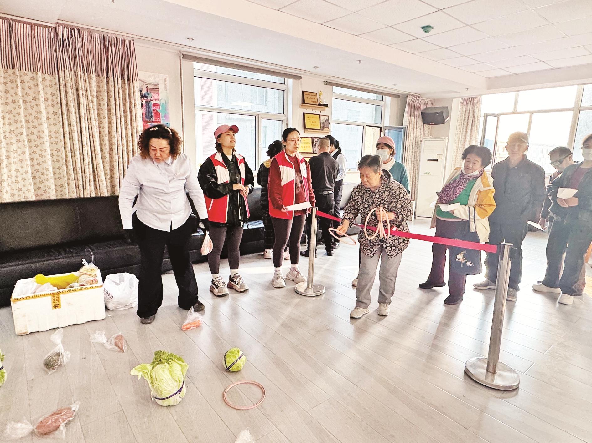 10月23日,海勃湾区凤凰岭街道墨香梨园社区开展“情暖重阳 乐享时光”主题活动,以趣味体验的形式让老年人在游戏中感受欢乐。 (段维娜 摄)