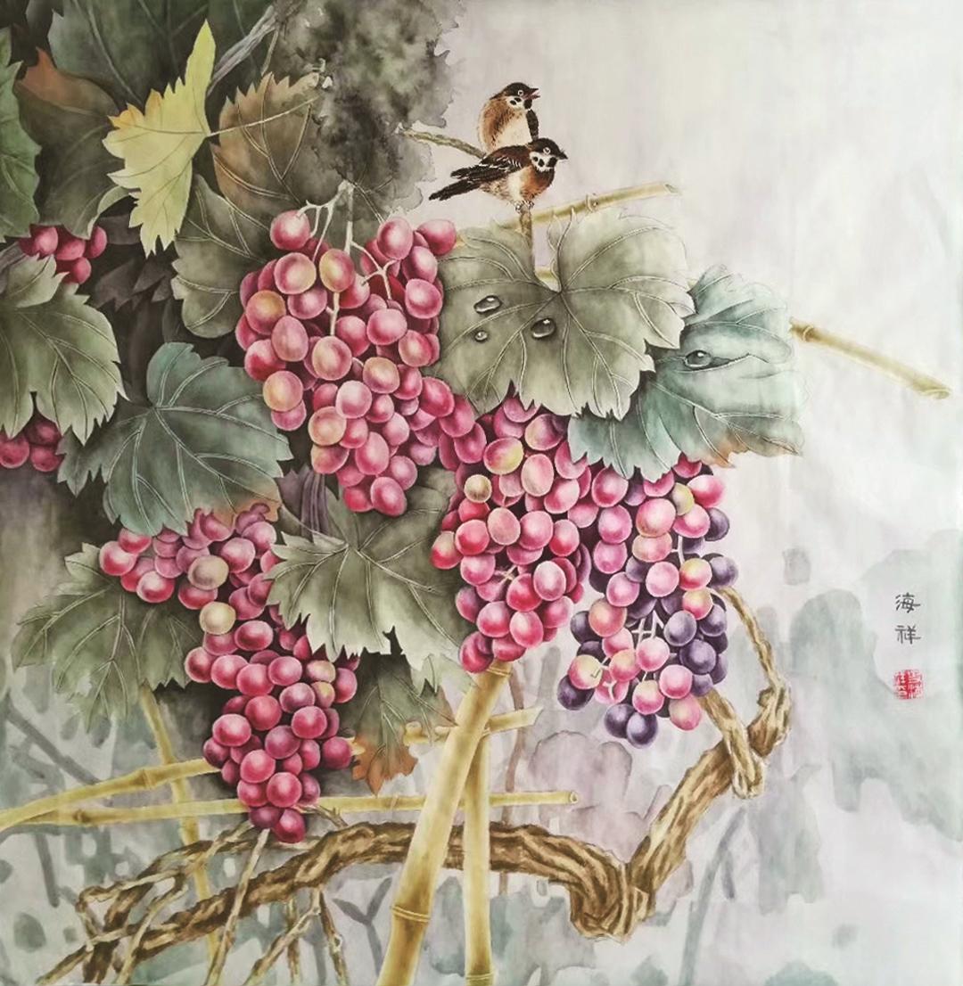 理想很丰满,现实很骨感。真当他开始专攻工笔画,才发现难度远超他的想象。“工笔画讲究细腻、工整,一笔都不能马虎,跟我之前画的写意完全不一样。”一开始,他选择画鱼——在中国传统文化里,鱼寓意吉祥,而且线条相对简单。可画着画着,张胤洲提醒他:“你是乌海人,为啥不画点有乌海特色的东西?比如咱们的葡萄。”这话点醒了史海祥:乌海是“葡萄之乡”,葡萄的水灵、丰满,不正是工笔画可以展现的吗?