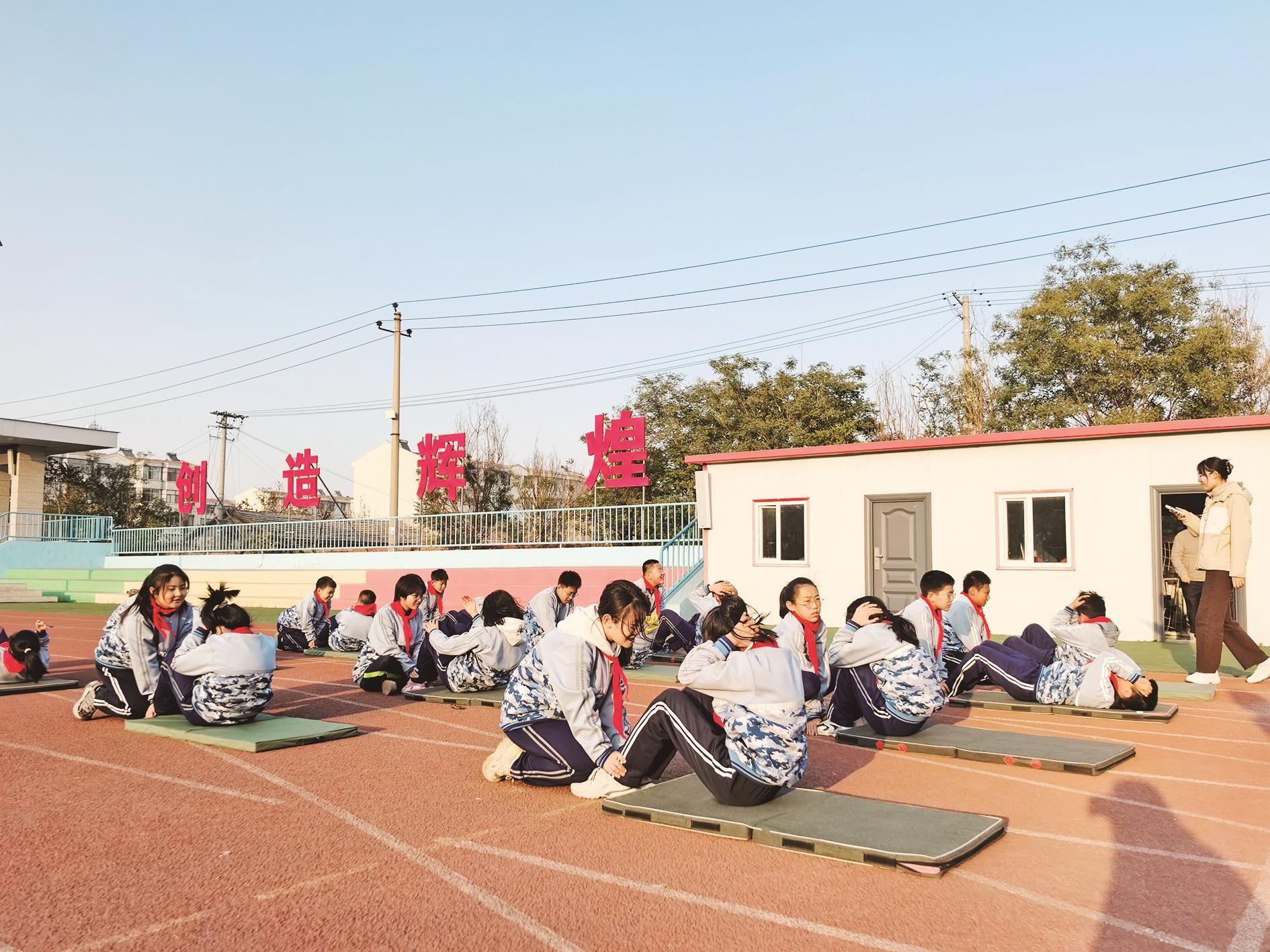 “体育教师在教学中还与思政、数学、音乐、科学等科目相融合,每天上体育课时都会配有不同的音乐,使学生在音乐中完成各种动作,寓教于乐。”冯磊说,假期也会布置体育作业,在开学第一周,学校会组织抽测假期体育作业的完成情况,留存结果与期中、期末成绩进行对比,再分析提高。