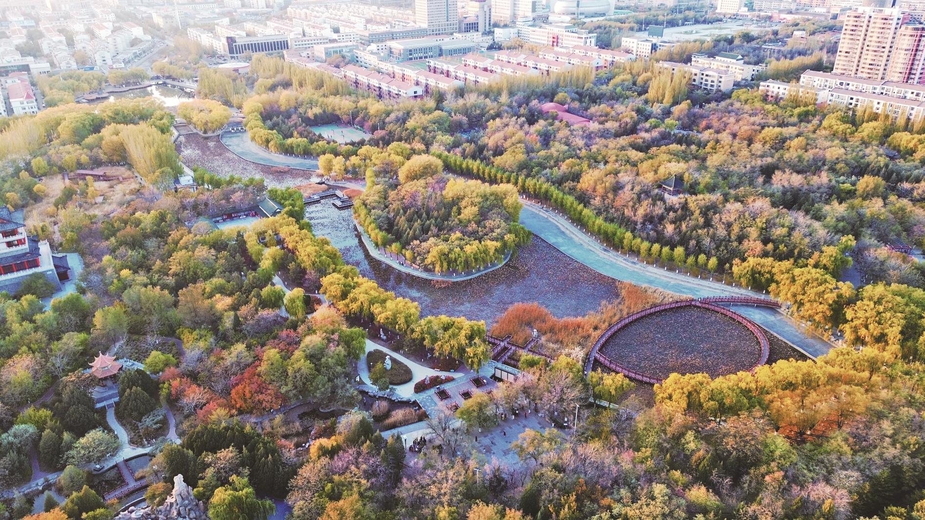 深秋时节,市人民公园五彩斑斓,秋色愈浓,美不胜收。 (赵政宇 摄)
