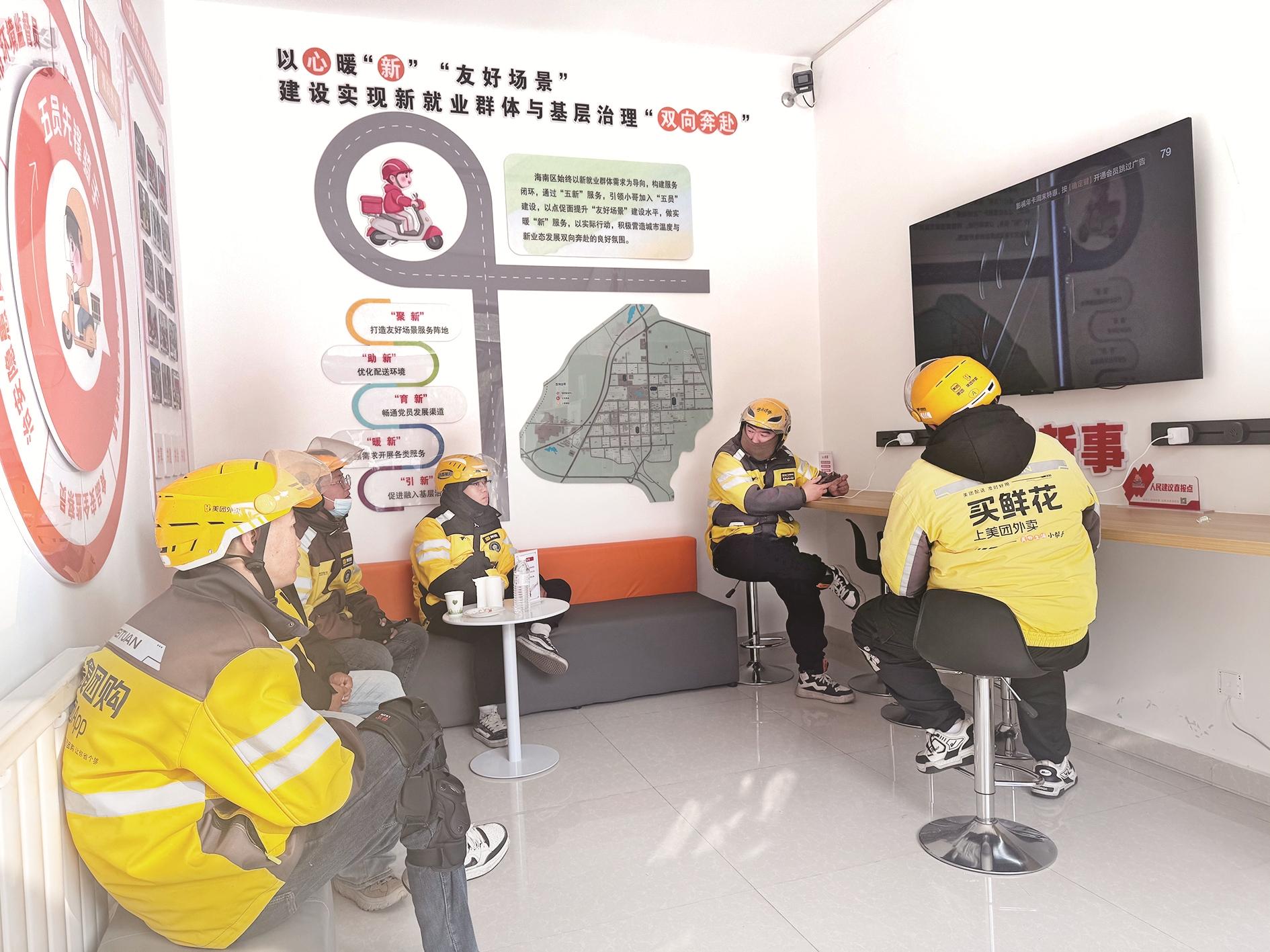 “以前跑单累了,只能蜷在电动自行车上眯一会儿,夏天晒得皮疼,冬天冻得手僵,连口热乎水都喝不上。”外卖骑手李文文的回忆里满是奔波的辛苦。如今,送单间隙走进金海社区的“小哥驿站”,充电、歇脚、热饭、喝水,成了他的“固定动作”。“这里就像我们的第二个家,有实实在在的温度,更有被尊重的归属感。”李文文的话语里满是认可。