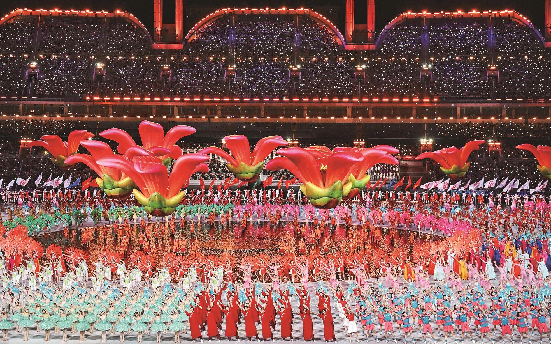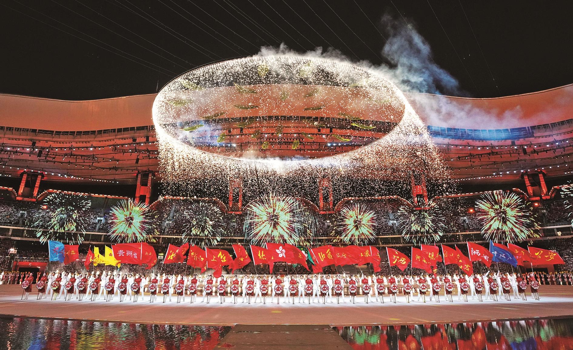 这是11月9日拍摄的开幕式现场。当日,第十五届全国运动会开幕式在广东奥林匹克体育中心举行。新华社记者 卢汉欣 摄