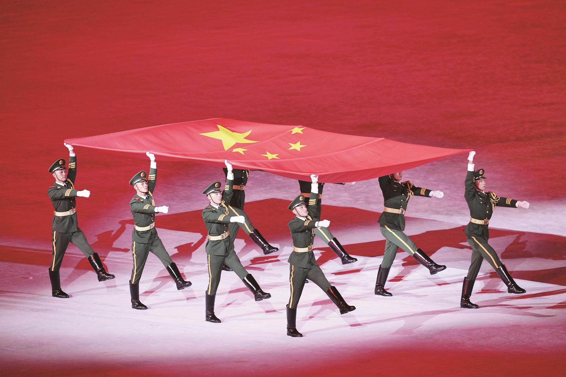 11月9日,旗手护送中华人民共和国国旗入场。 新华社记者 赖向东 摄
