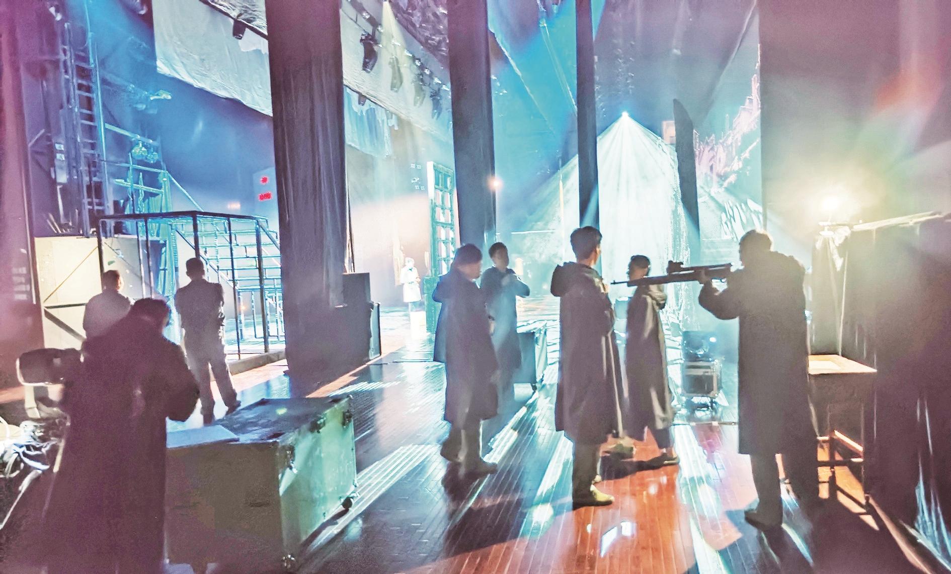 记者在采访中了解到,这部剧仅靠29名演员完成,他们也是乌海乌兰牧骑的队员。张宁说:“演员们不仅需要在不同时期的角色之间快速切换,还要兼顾歌舞表演的专业性。29个人要撑起一部重大题材的歌舞剧,一开始我们心里也没底。”负责舞蹈编导的刘星说:“尤其是‘弹道测试’这一幕,剧本中仅有简单的名称提示,没有具体的内容参考。为了呈现出最佳效果,团队经过反复探讨与试验,采用虚实结合的编舞方式,将年轻人与时间赛跑等意象融入舞蹈,最终呈现出极具视觉冲击力的舞台效果,让观众仿佛置身于紧张激烈的测试现场。”