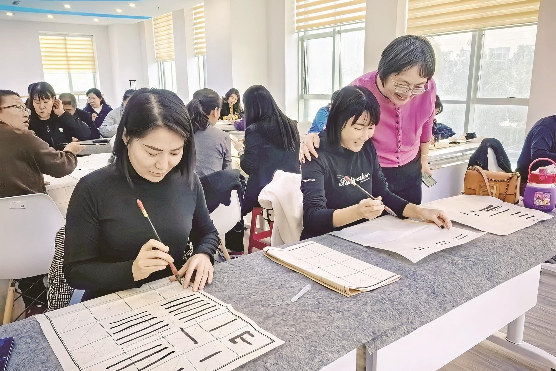 为传承和弘扬中华优秀传统文化,进一步丰富辖区居民精神文化生活,近日,海勃湾区滨河街道湖东社区开展了“笔尖传雅韵 墨香润邻里”书法进社区活动。市职业技术学校的书法教师现场指导居民练习书法。