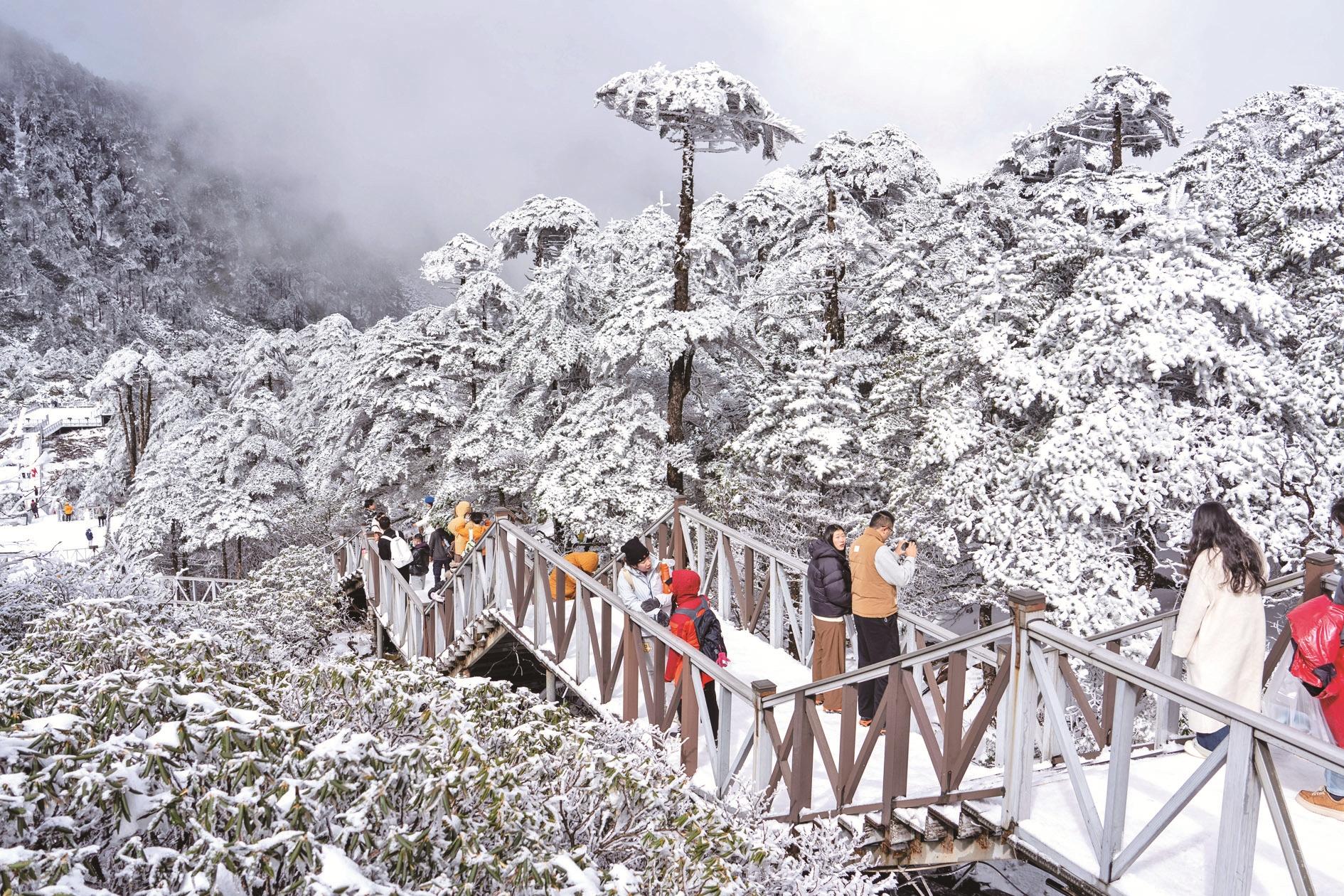 11月24日,云南大理苍山冰雪景观吸引众多游客前来观赏。受冷空气影响,云南大理苍山迎来2025年入冬后的首场降雪。银装素裹的山林与山脚下的洱海、古城相映成趣,构成一幅水墨画卷。